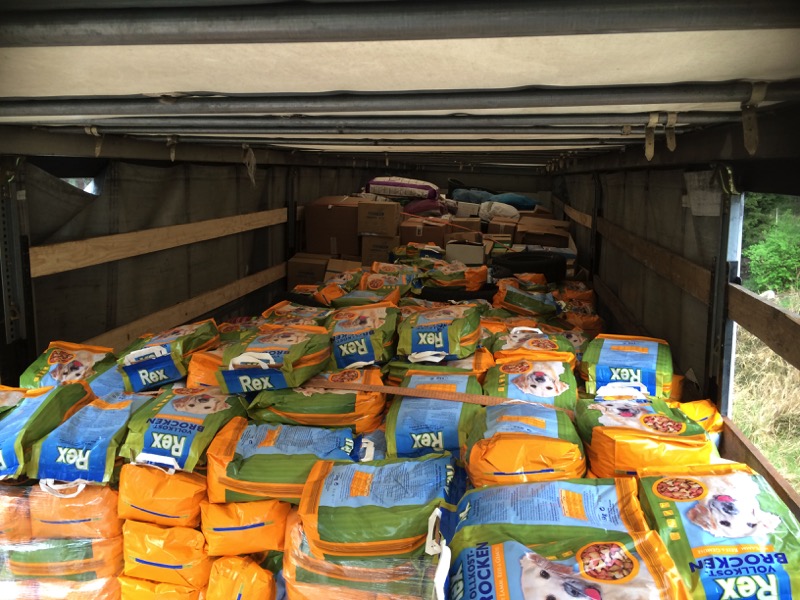 Unser Dank geht nicht nur an Spender aus unserer Umgebung und aus Berlin, sondern auch nach Süd-, West- und Norddeutschland. Wir danken allen: für die 1,00 Euro-Spende abgezwacktes Taschengeld, für das Tütchen mit Leckerlis, für jedes kleine Päckchen und große Paket, für jeden vorbeigebrachten Beutel, jeden gefüllten Kofferraum bis hin zu den Spendern, die ganze Paletten stifteten.