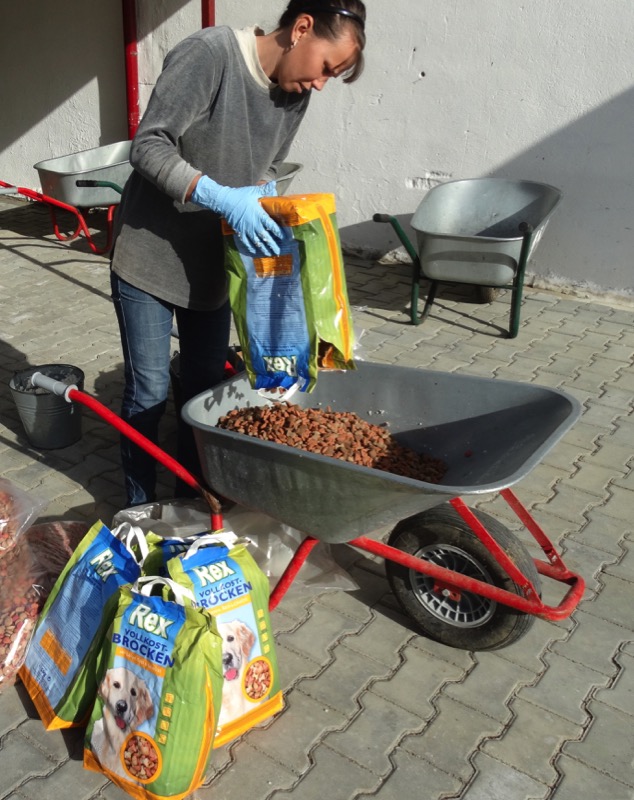 Ja, es war eine riesige Ladung. Aber wir sind sicher, es ist alles von den über 5.000 Tieren dort schneller aufgegessen, als wir hier die Fotos vom Entladen einstellen können. Man mag sich die Dimensionen der Bedürftigkeit nicht vorstellen.