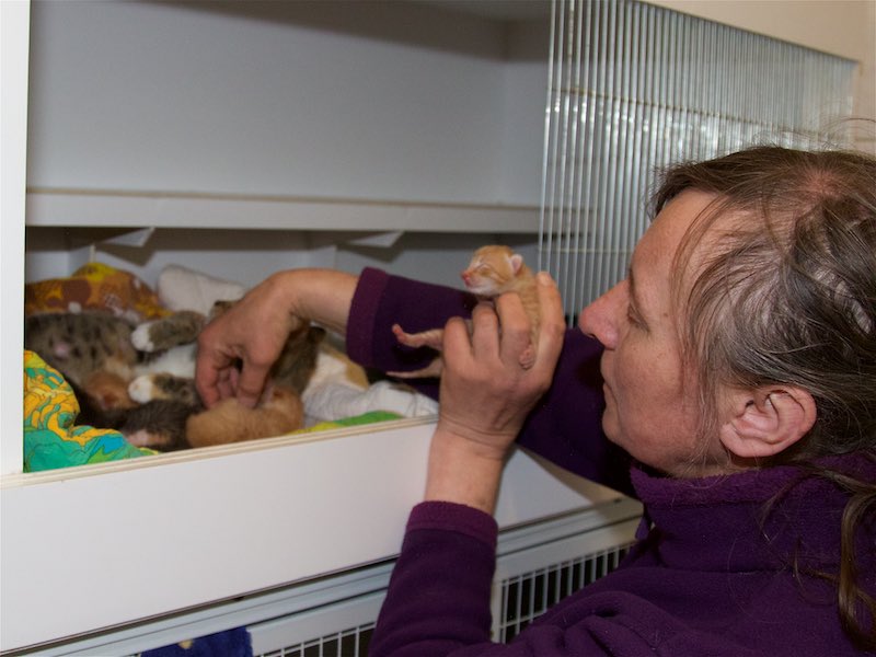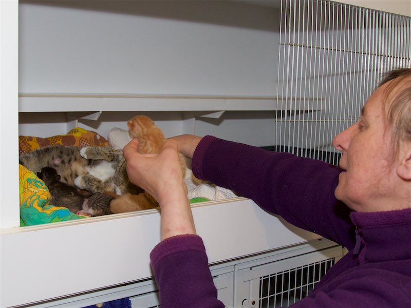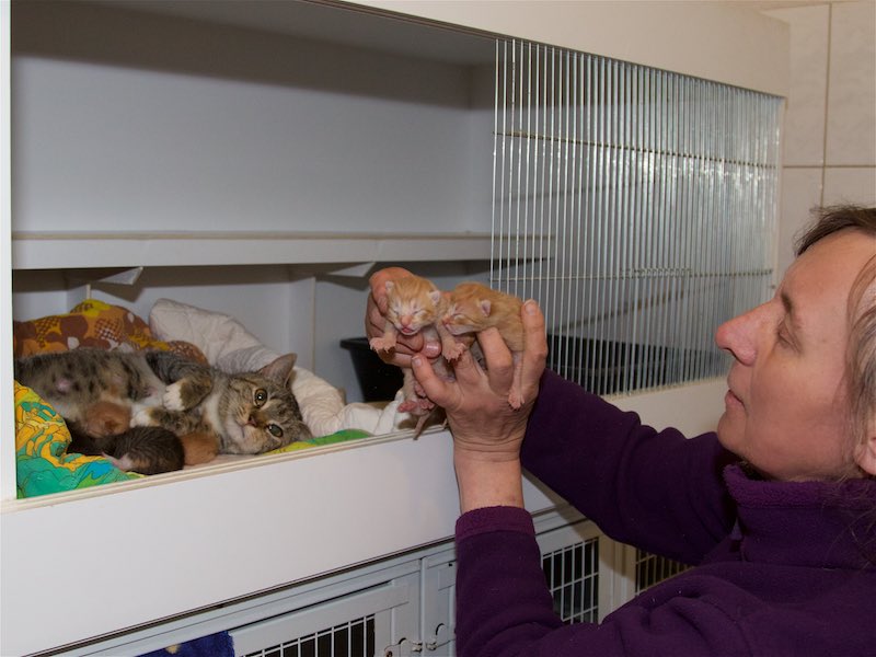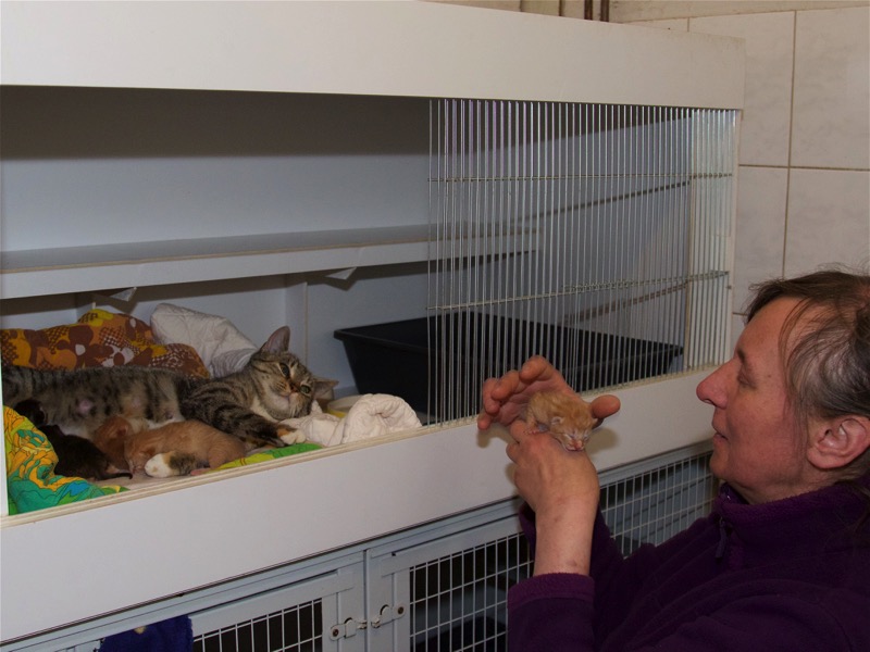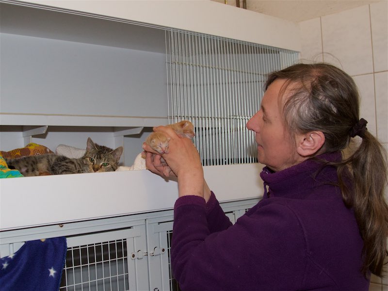 Unsere Jungkatzen stammen von Straßenkatzen, die nicht rechtzeitig zur Kastration bei uns abgegeben wurden. Wir versorgen die Mütter und Kitten, bis sie kastriert werden können. Alle Jungkatzen gehen danach in die Vermittlung. Die Mütter versuchen wir zu sozialisieren und dann ebenfalls zu vermitteln. Wenn sie so wild sind, dass alle Versuche fehlschlagen, gehen sie kastriert an den Auffindeort zurück.