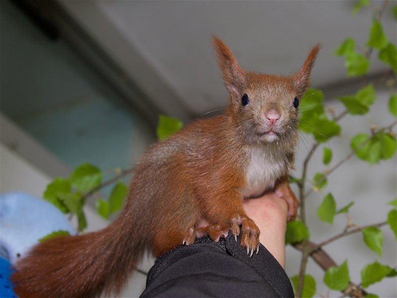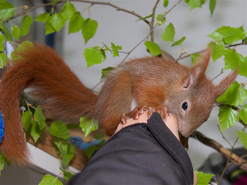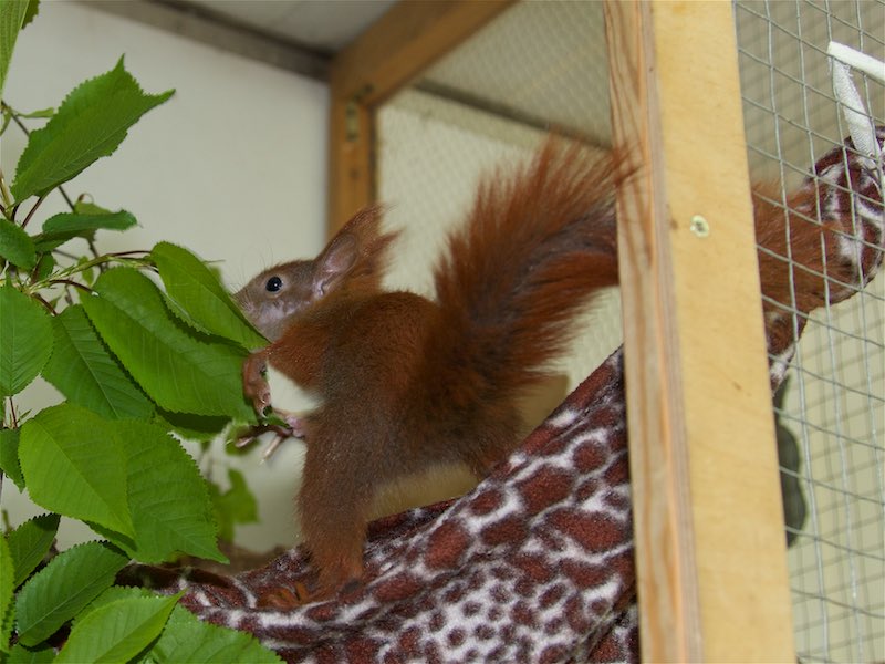 Dank der rührenden Fürsorge unserer Tierpflegerin Liane und weiterer Mitarbeiter sind die beiden Eichhörnchendamen Wiebke und Jannika zu fitten und flinken Kletterern herangewachsen.Sie können jetzt in große Auswilderungsvolieren umziehen und dann bald in die Freiheit entlassen werden.