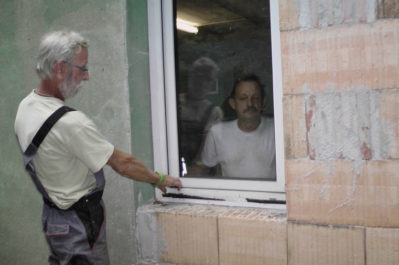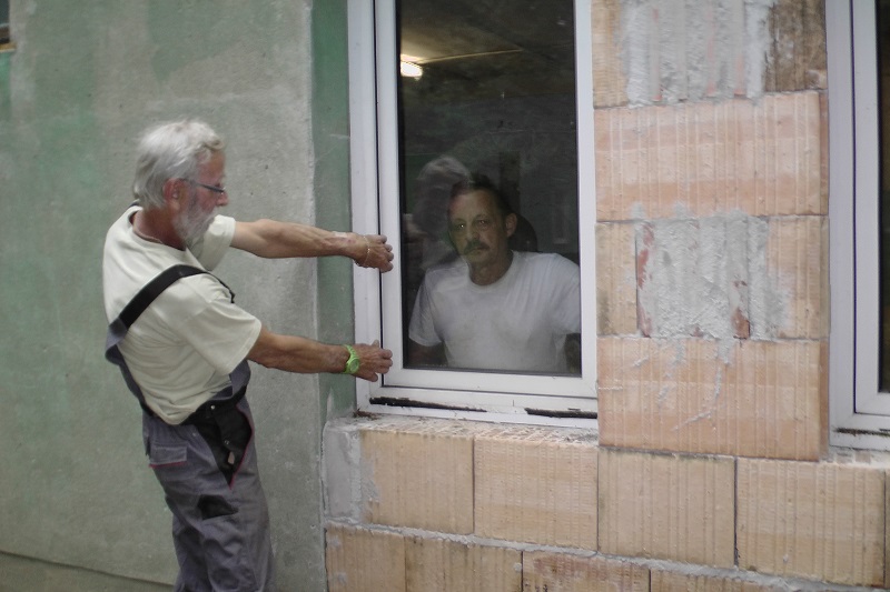 Unsere Tierpfleger Siegfried und Detlef haben dafür einen überflüssigen Schaltraum abgerissen und zugemauert. Unser Tierheimleiter hat Fenster besorgt (gebrauchte - neue hätten wir uns nicht leisten können). So werden die Katzen auch besseres Licht haben, wenn sie einziehen werden.