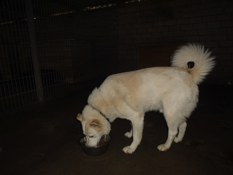 Bei 70 Hunden bekommt dann jeder ein Schmankerl oben auf das Trockenfutter und die älteren und kränklichen werden bevorzugt und erhalten eine ganze Schüssel.