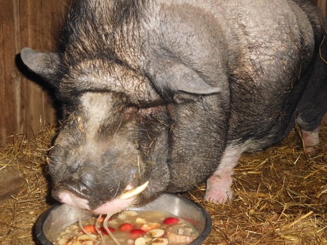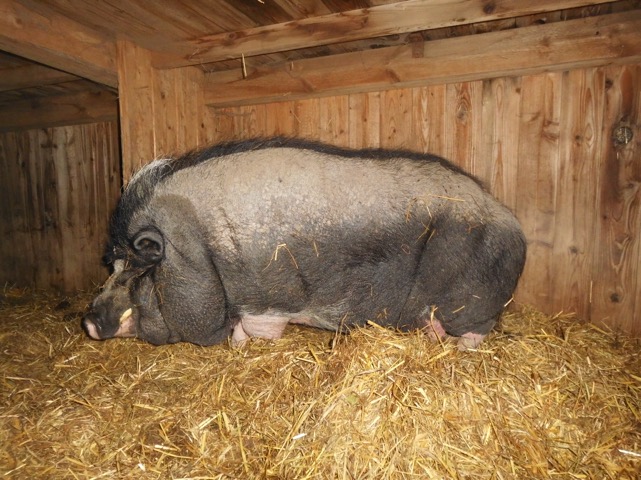 Das Schweinchen hatte große Schmerzen, schlimm entzündete Füßchen und war völlig durch den Wind. Es hatte wohl nur Brot bekommen, war übergewichtig/aufgebläht und kannte kaum anderes Essen. Bei uns angekommen, aß es nicht, trank nicht, konnte nicht aufstehen. Wir hatten Sorge, es ins Leben zurückzuholen. Unsere Tierpfleger führten mit der Hand bröckchenweise Futter zu und flößten Wasser ein. Die Fürsorge und die sofortige tierärztliche Behandlung haben inzwischen angeschlagen. Das Schweinchen läuft wieder - zwar zaghaft - aber es ist wieder auf die Beine gekommen.