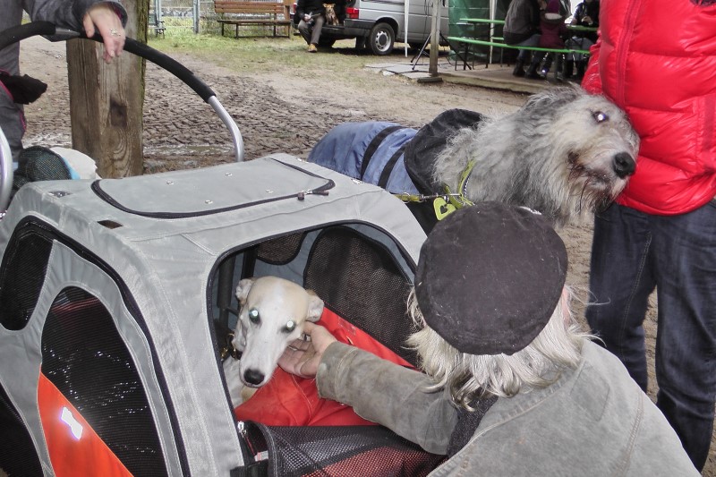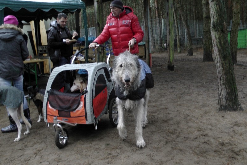 Unsere TierpflegerInnen freuten sich, so viele bekannte Fellnasen zu sehen. Sie staunten nicht schlecht, als unser ehemaliger Schützling Janus - ein Windhund mit einem amputierten Bein - drei seiner sieben Adoptivgeschwister mitgebracht hatte. Dazu zählt auch ein großer Irischer Wolfshund. Wow, er ist wirklich groß.
