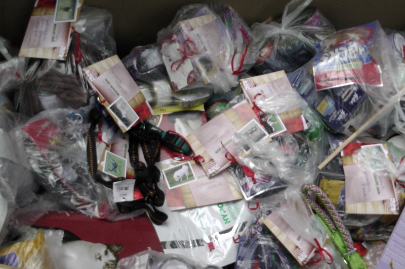 Weihnachtsfeier im Tierheim VerlorenwasserDie Bescherung für unsere Tiere fand am 26.12. statt. Unerwartet viele Tierfreunde kamen nach Verlorenwasser, um ihre Geschenke zu überreichen. Ganze Autoladungen trafen ein, so dass wir bald zusätzliche Boxen aufstellen mussten.