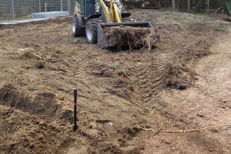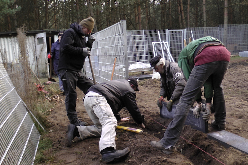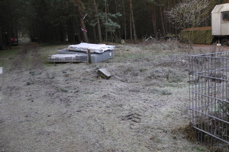 Unser gesamtes Gelände ist mit solchen Flächen überzogen, denn zu DDR-Zeiten war es eine Schulungseinrichtung der Bereitschaftspolizei. Auf den Betonflächen wurden bei Übungen Mannschaftszelte aufgebaut.