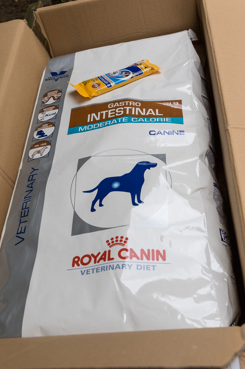 Darüber hinaus benötigen wir dringend Trockenfutter Schonkost für Magen-Darm-Erkrankungen, Durchfall usw., z.B.: Royal Canin Gastro Intestinal Moderate Calorie