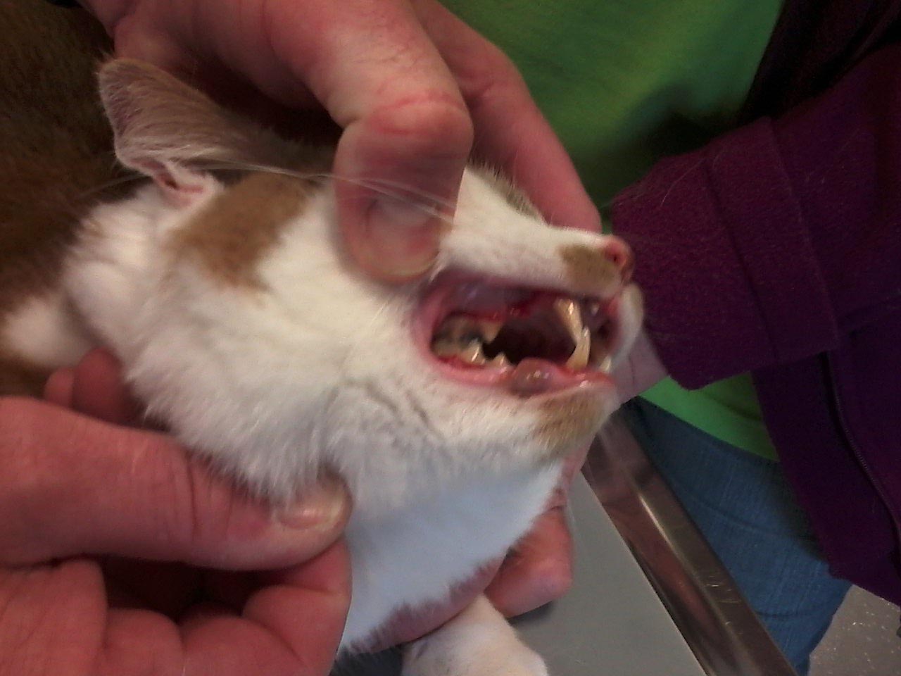Ab acht Uhr operierte der Tierarzt fast ununterbrochen. Und obwohl er und seine Helferinnen sehr flink waren, schafften sie nur 8 Tiere den ganzen Tag. Es war wirklich viel mehr zu tun, als wir gedacht hätten. Alle (!) Katzen waren betroffen. Bei mancher blieb kaum ein Zahn im Mäulchen zurück. Aber keine Sorge: selbst ganz ohne Zähne kann eine Katze noch fressen. Das ist ihr allemal lieber, als ständig Schmerzen zu haben.