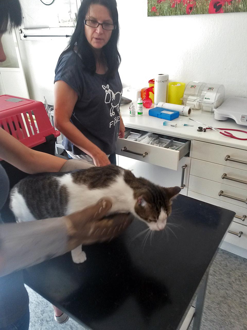 Wir fuhren nach Hennickendorf b. Berlin zu Frau Dr. Höfer. Sie und ihr Team spendierten uns ihren freien Tag, denn während des normalen Praxisbetriebes kann man so viele Tiere nicht behandeln. Deshalb schaffen wir es ja auch nicht bei uns in Verlorenwasser.