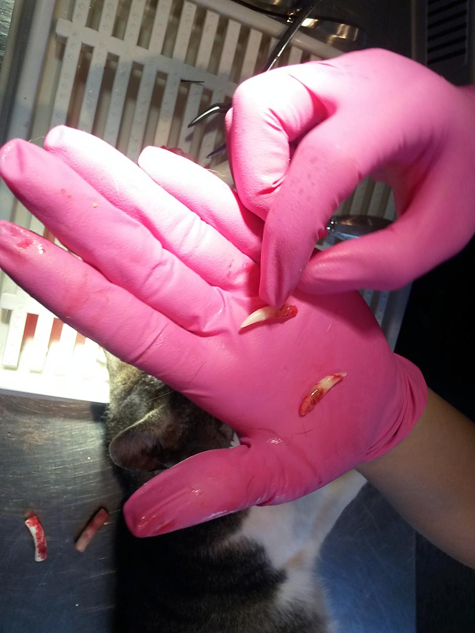 Wieder stellten wir einen größeren Transport mit unseren Tieren zusammen - 11 Katzen und 4 Hunde - mit dem Verdacht, da könne etwas sein. Und tatsächlich: bis auf zwei Katzen, die nur Zahnstein hatten, gab es bei allen anderen Probleme.