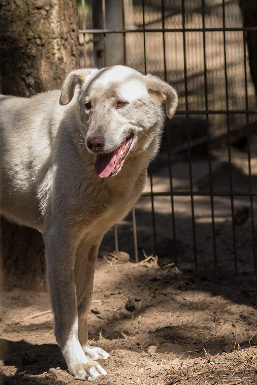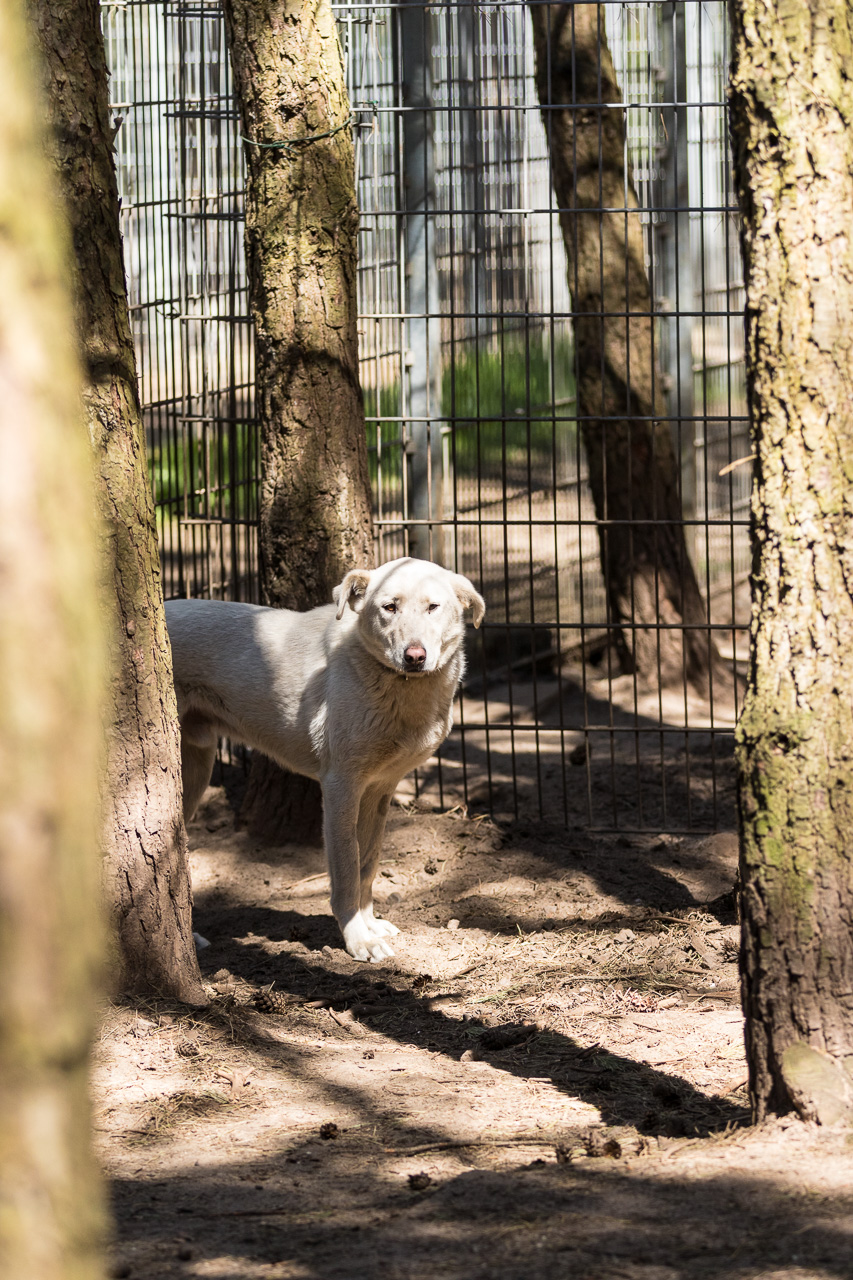 Wir wussten, dass es nicht einfach werden würde mit Gerry. Doch als er eintraf, zeigte er sich noch ängstlicher, als wir erwartet hatten. Er wurde panisch, wenn Menschen sich näherten. Wir ließen ihn mit Hündinnen gemeinsam leben in der Hoffnung, er schaut sich etwas ab. Und wir gaben ihm viel Zeit. Nach den ersten Wochen begannen wir vorsichtig, ihn daran zu gewöhnen aus der Hand gefüttert zu werden und die Nähe des Menschen zu ertragen. Doch wollte man ihn am Halsband anfassen und anleinen, biss er sofort alles durch und flüchtete.
