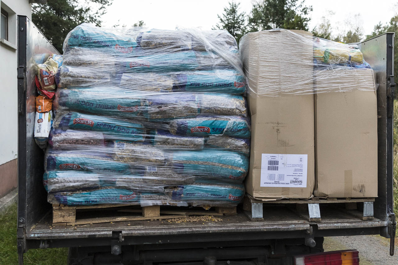 Egal. Das Ergebnis war jedenfalls: Wir durften 11 verwilderte Katzen auf einen Schlag auf einem Hof mit echtem Freigang in schöner weitläufiger ruhiger Landschaft unterbringen. Die Katzen haben bei uns auch ihren Freigang. Aber bei verwilderten Katzen, die sich nicht zähmen lassen wollen, sind auch unsere großen Gehege mit 80 m² nur ein Klacks und befriedigen nicht die Bedürfnisse solcher Miezen, grad wenn sie über längere Zeit im Gehege hocken müssen, weil niemand sie adoptieren will. Mit den Katzen gingen ein paar Paletten Futter auf die Reise, denn wir finden es immer gut, wenn man andere nicht nur "benutzt", sondern auch seinen eigenen Beitrag leistet.