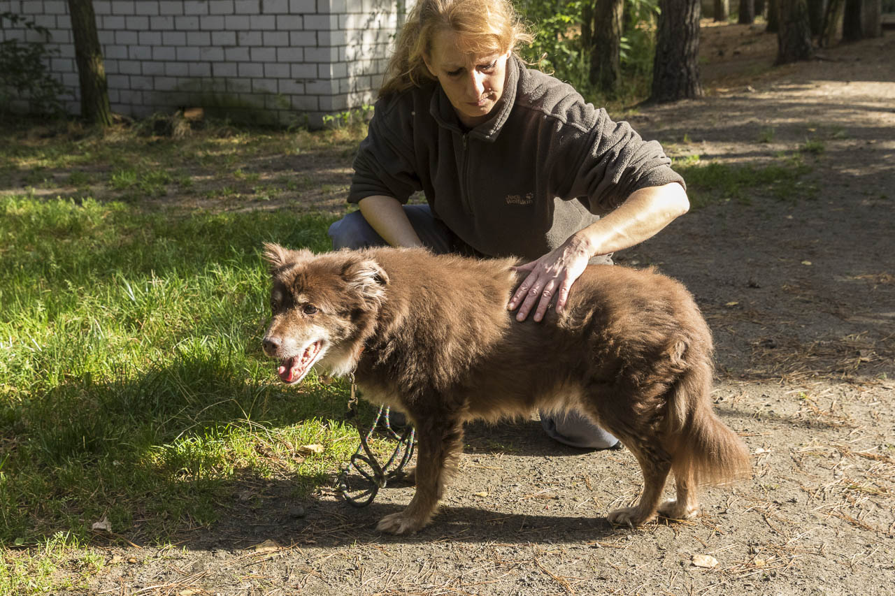 Unser ehrenamtlicher Fotograf kam, um die neu aufgenommenen Hunde zu fotografieren. Unter ihnen ist Lorenzo, ein alter Border-Collie-Mix, der leider sehr alt und in keinem guten Zustand ist. Er scheint erst vor nicht allzu langer Zeit erblindet zu sein, denn er läuft noch sehr unsicher.
