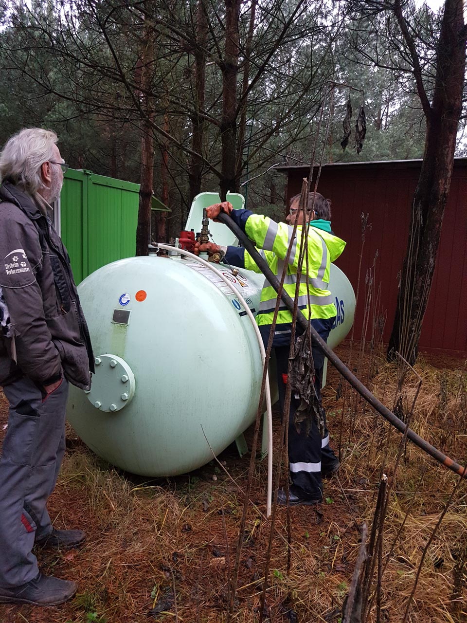 Durch die Größe unserer Gebäude kommt dann trotzdem etliches an Verbrauch zusammen. Bei der Anlieferung des Heizgases bekamen wir sogar ein bißchen Ärger, weil wir den Tank so leer gefahren hatten, dass er aufgrund zu geringen Druckes eigentlich nicht mehr hätte befüllt werden dürfen. Ist nochmal gut gegangen. Aber wir müssen in Zukunft früher bestellen.