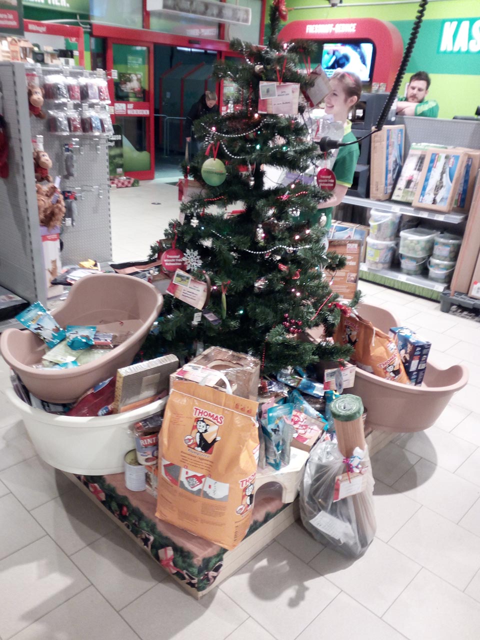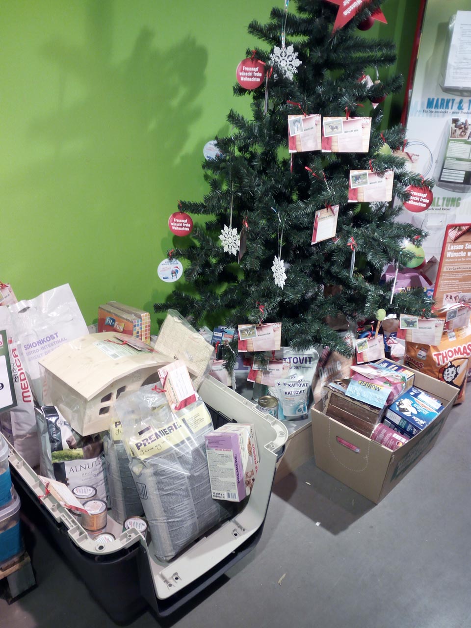 Die Bäume bleiben teilweise noch bis nach Weihnachten stehen, aber unser Tierheimleiter durfte in mehreren Berliner Filialen am 23.12. schon vorbeikommen und die bisher eingegangenen Spenden abholen.