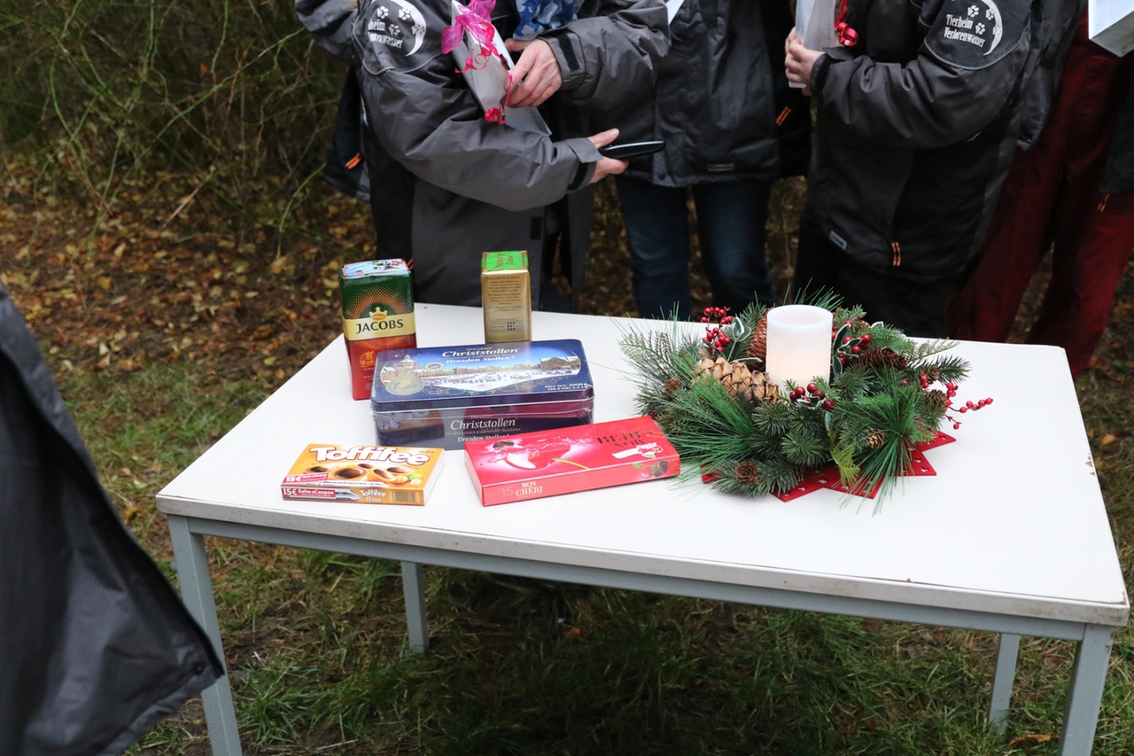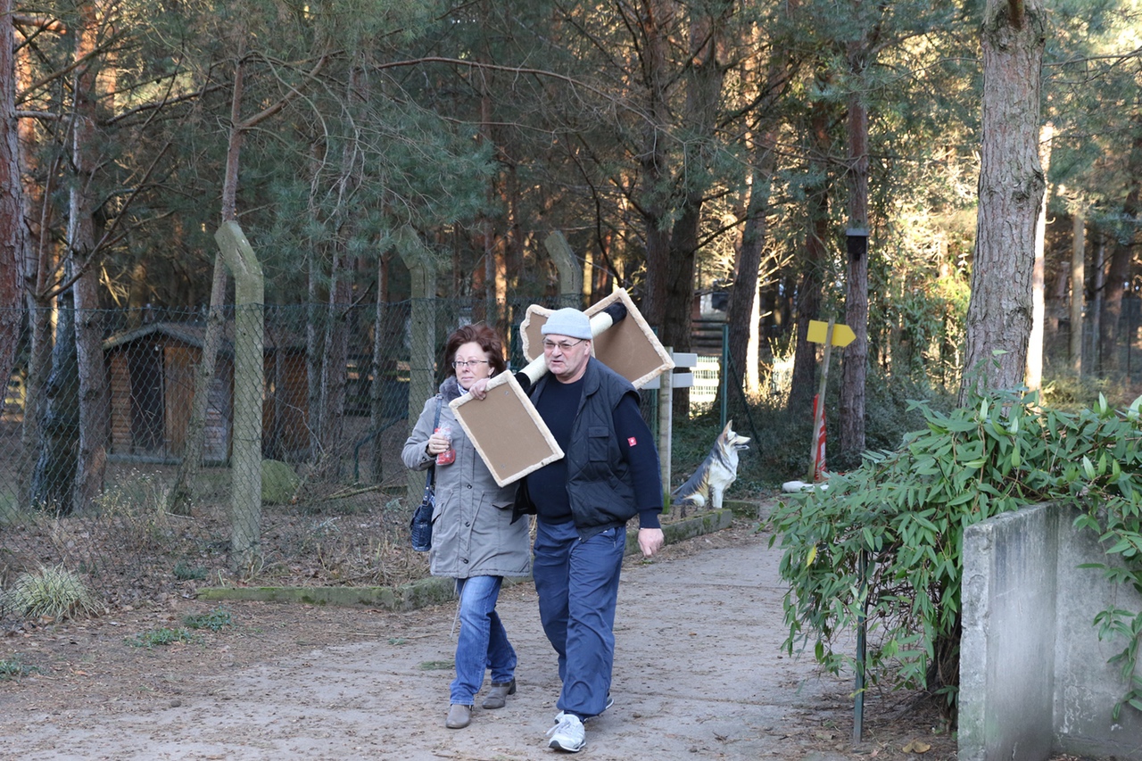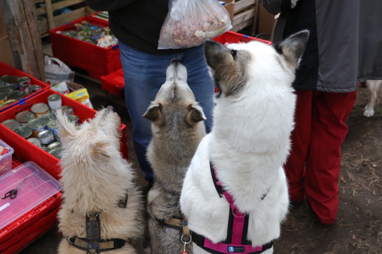 Zum Glück verlief der restliche Tag dann ausschließlich positiv. Alle Besucher kamen mit vollen Händen. Ehemalige schauten vorbei; die Mitarbeiter wurden reich beschenkt; alle Hunde erhielten zusätzliche Gassitouren; die gespendeten neuen LKW-Reifen erhielten ein Weihnachtsschleifchen für unser Dankfoto ...