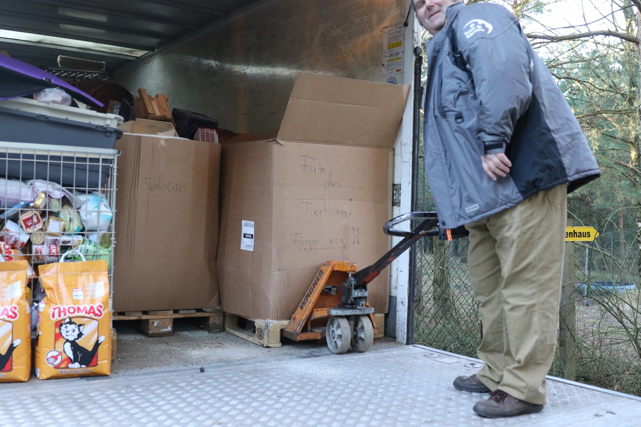 UND: Dann war da ja noch der LKW. Von Berliner Geschäften hatte unser Tierheimleiter ebenfalls reichlich Spenden abholen dürfen.