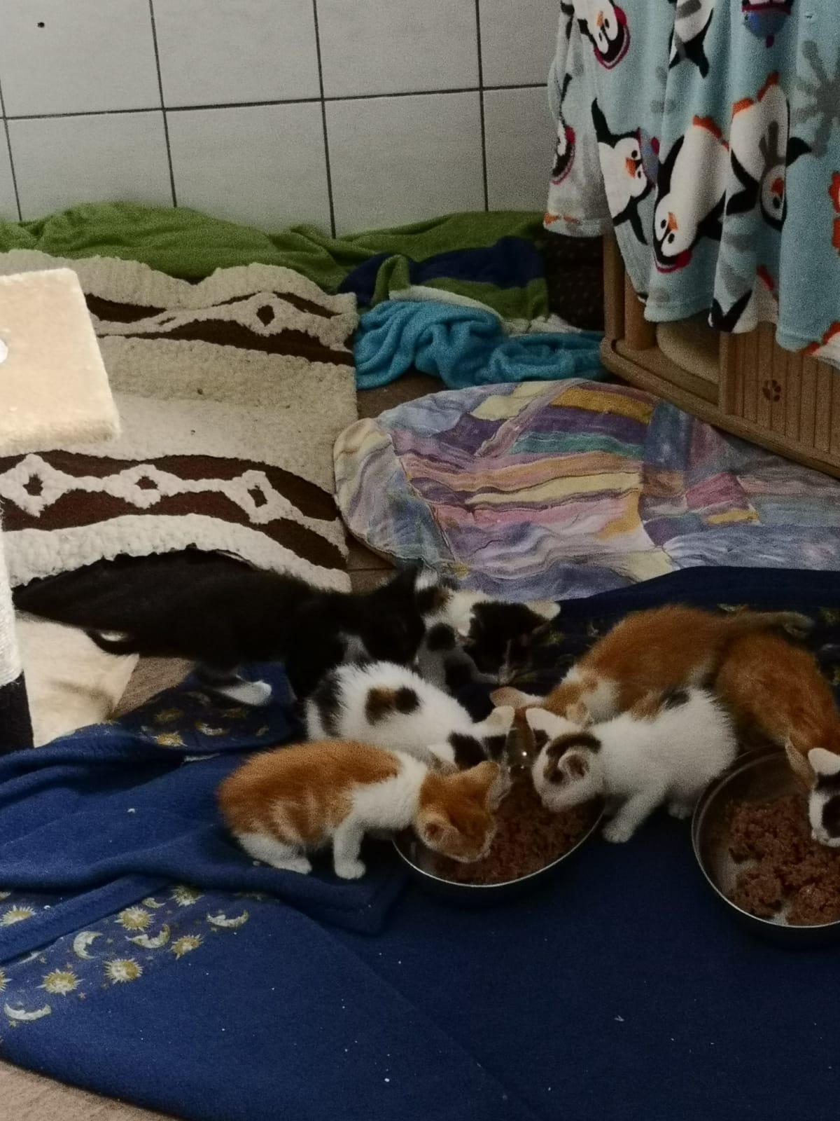 Wir hoffen, bald auf Erwachsenenfutter umstellen zu können. Aber die Kleinen sind zum Teil so zart - und zum Teil auch sehr krank -, dass sie es im Moment noch nicht nehmen können.