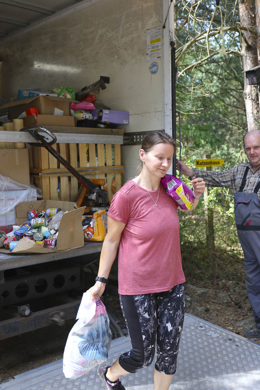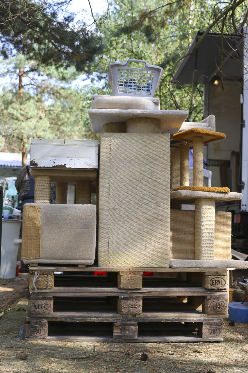 Und am nächsten Tag fuhr er dann noch zu lieben Tierfreunden nach Berlin, die ihren Verein auflösen. Auch dort durften wir uns nehmen, was wir wollten: Kratzbäume, Körbchen, Transportboxen, Gehegeteile ... Der LKW füllte sich.