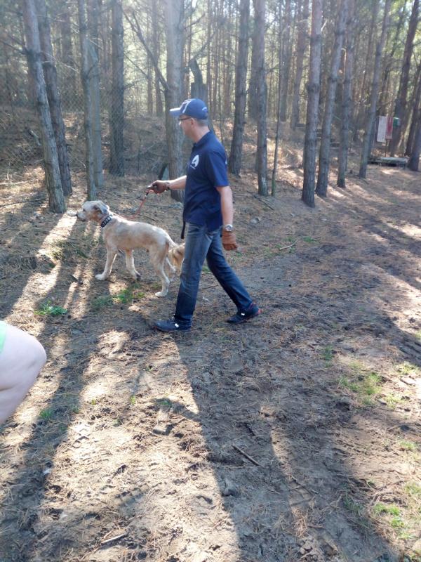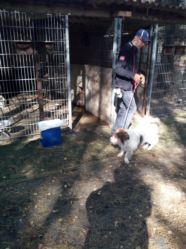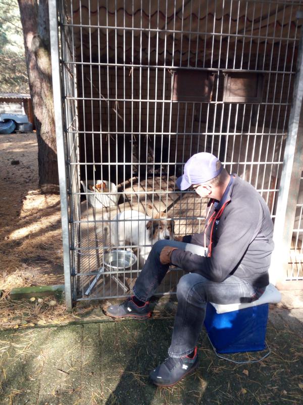 Mit einigen Hunden, die bei uns als verhaltensauffällig abgegeben worden waren, nahm er zunächst einmal Kontakt auf und setzte sich vor den Zwinger. Nach einem ausführlichen Gespräch von "Mann zu Mann", das durchaus schweigend verlaufen kann, war dann die erste Vertrauensbasis geschaffen und es ging entspannt auf Gassi.