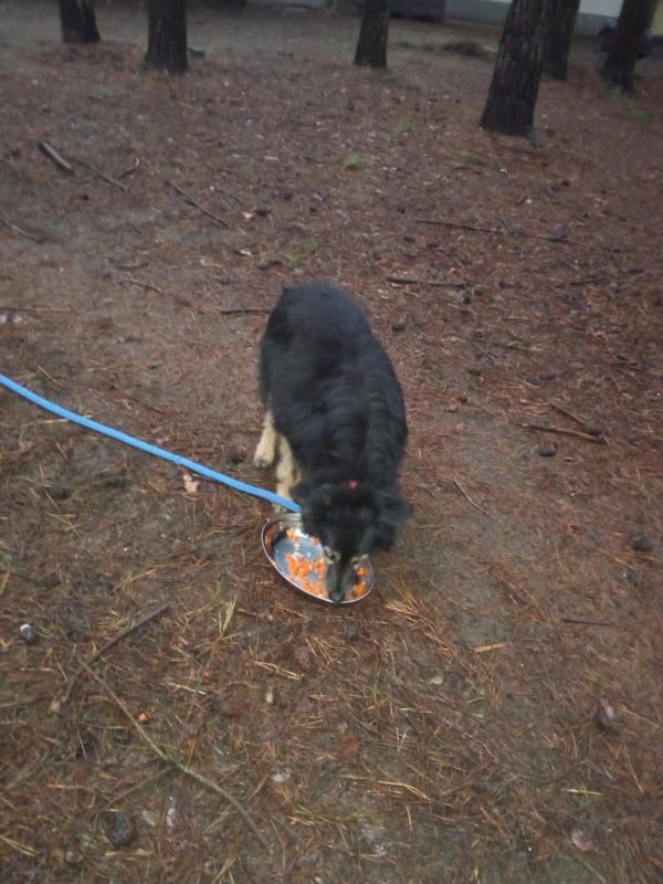 Bruno, Alabai und die vielen anderen erhielten jeder ein Schälchen Leckerbissen: pures Hühnerfleisch mit Karotten und Süßkartoffeln - keine Zusatzstoffe.