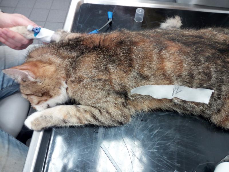 Alle Straßen-Kätzinnen wurden zuvor per Ultraschall untersucht. Etliche waren schon so weit tragend, dass die Ärzte nicht mehr kastrierten. Hier ziehen wir also die Jungen auf und die Mütter werden danach kastriert.