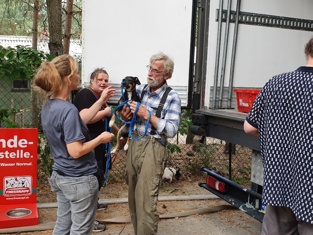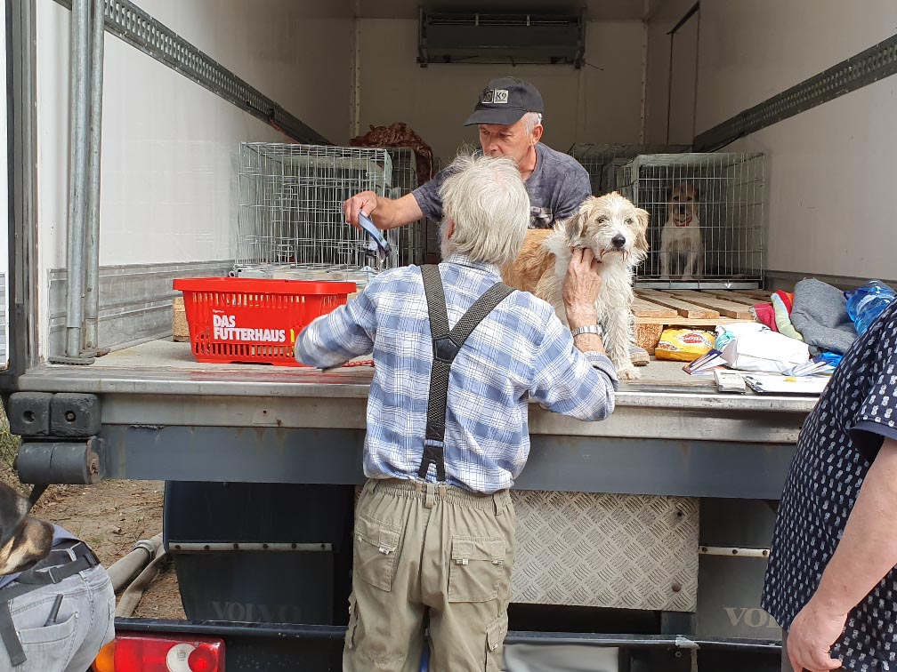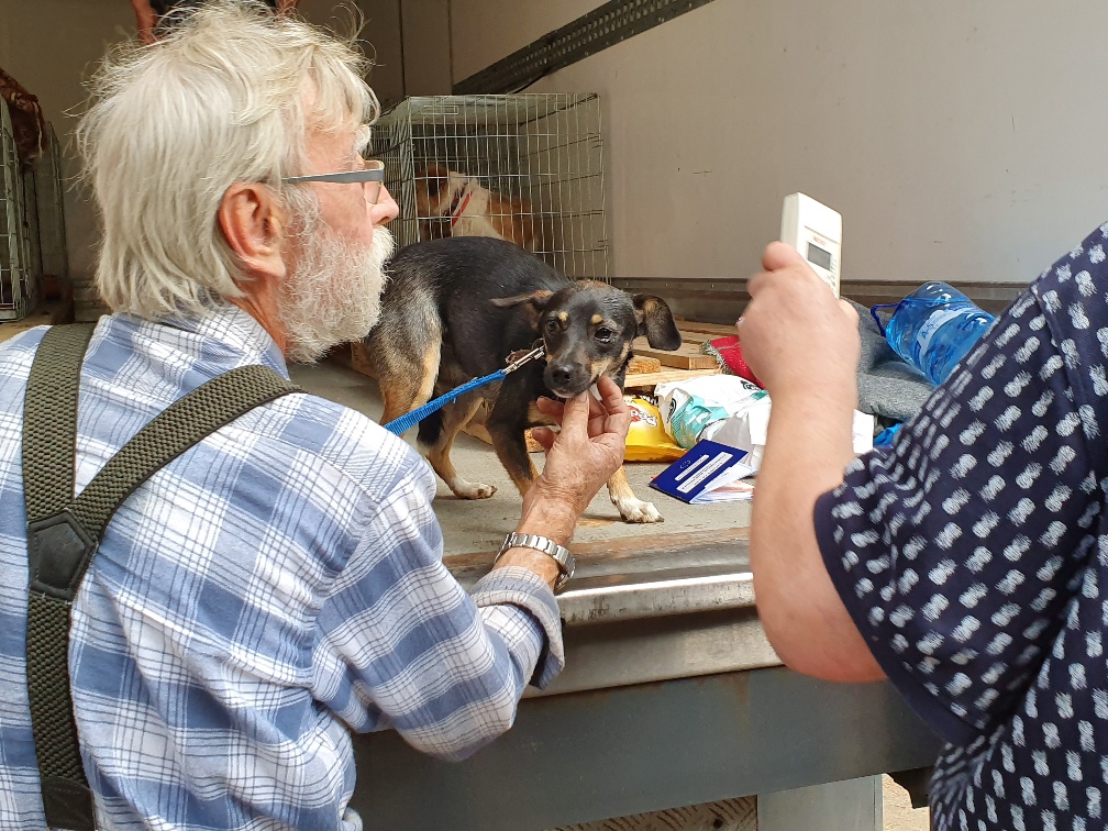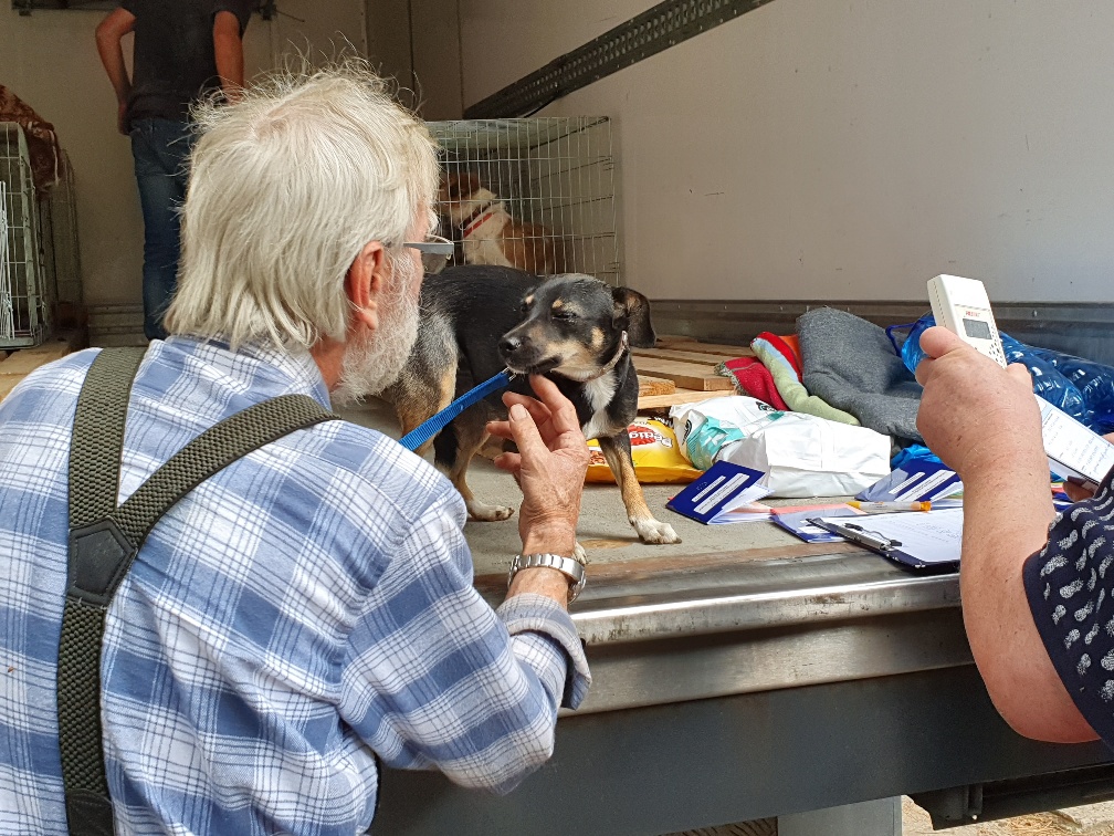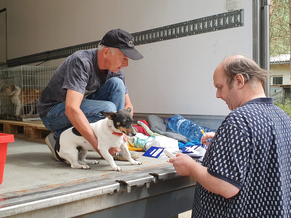 Der polnische Tierheimleiter Maciej gab alle Tiere vom LKW herunter. Wir kontrollierten die Papiere und checkten den Zustand der Tiere.
