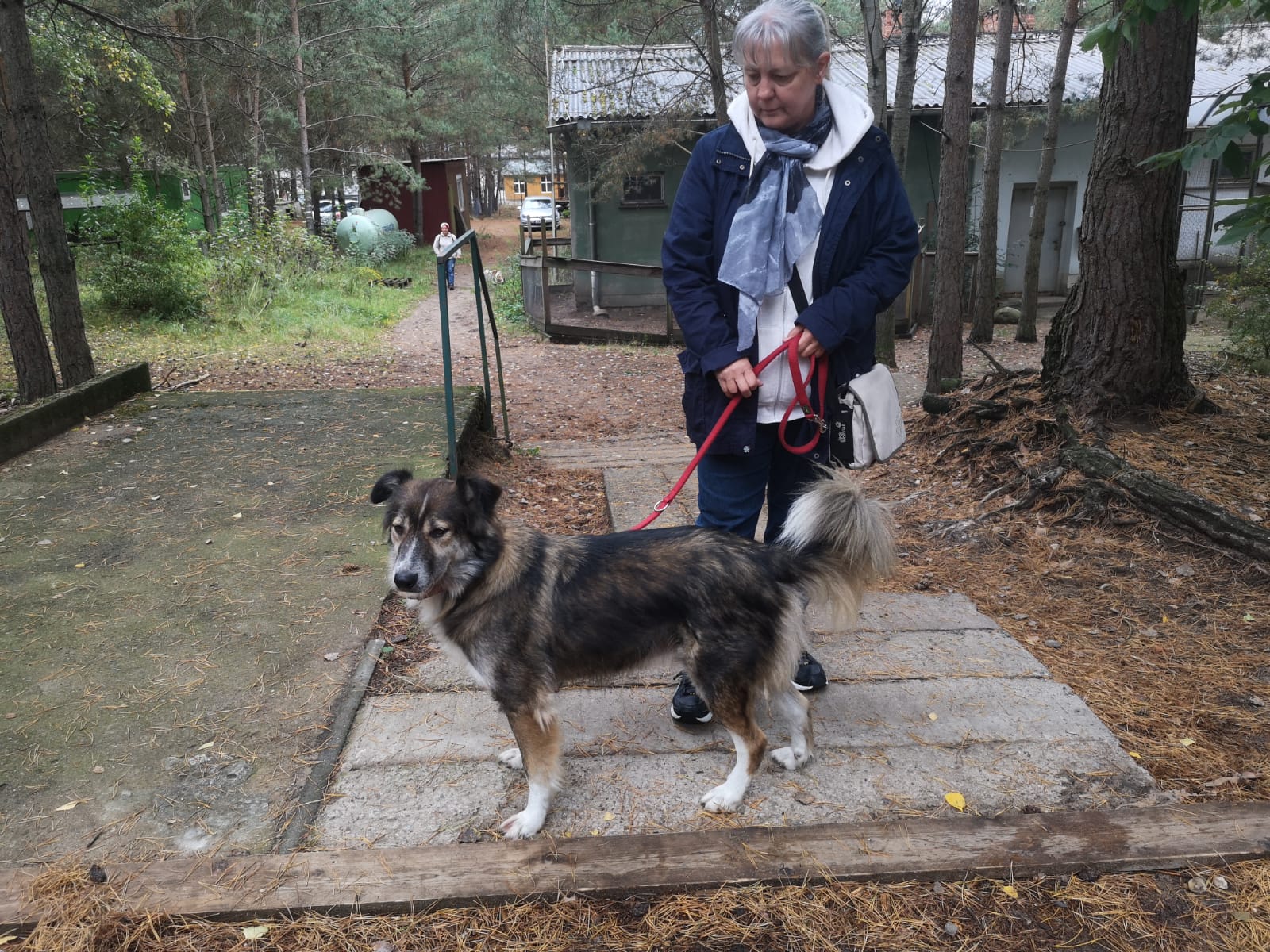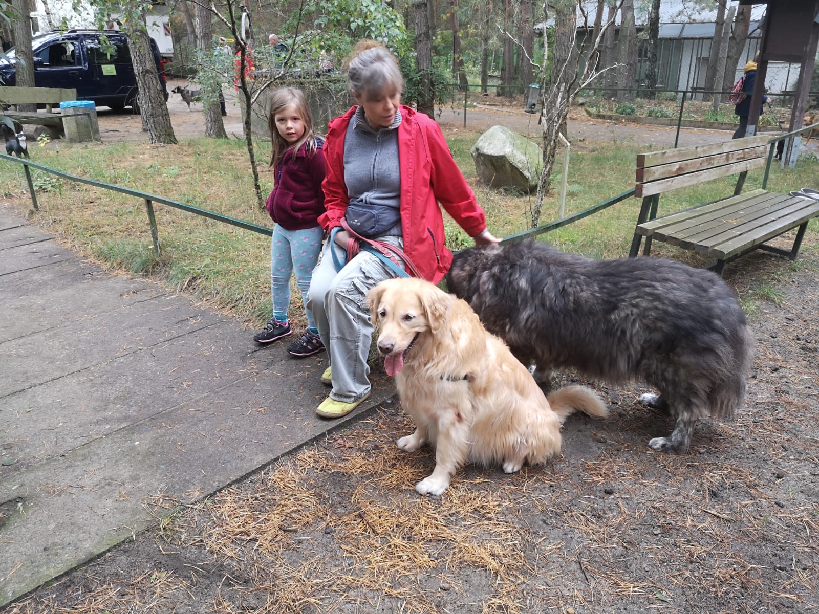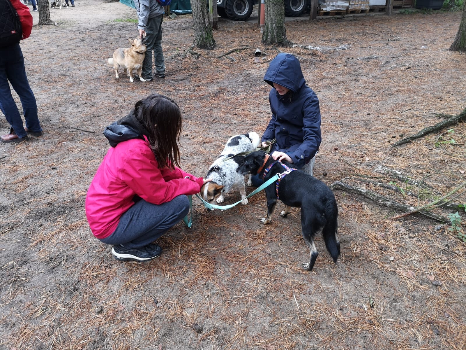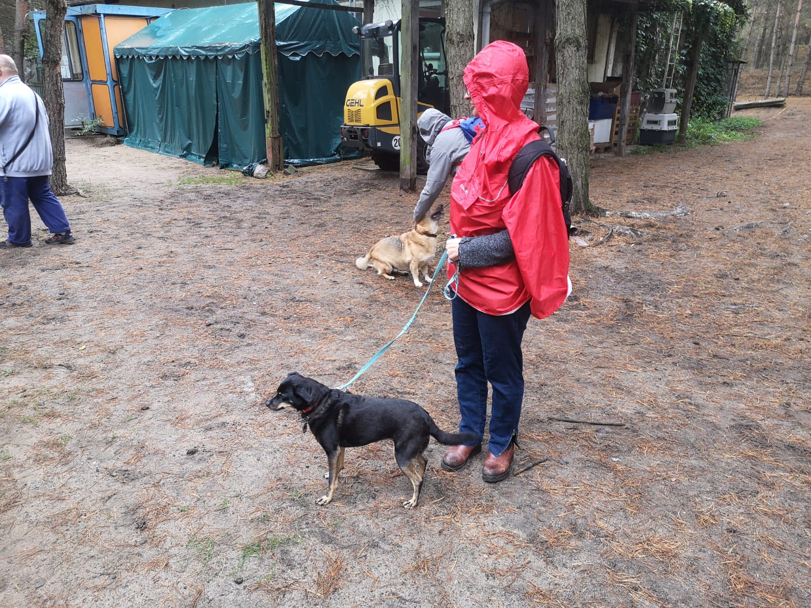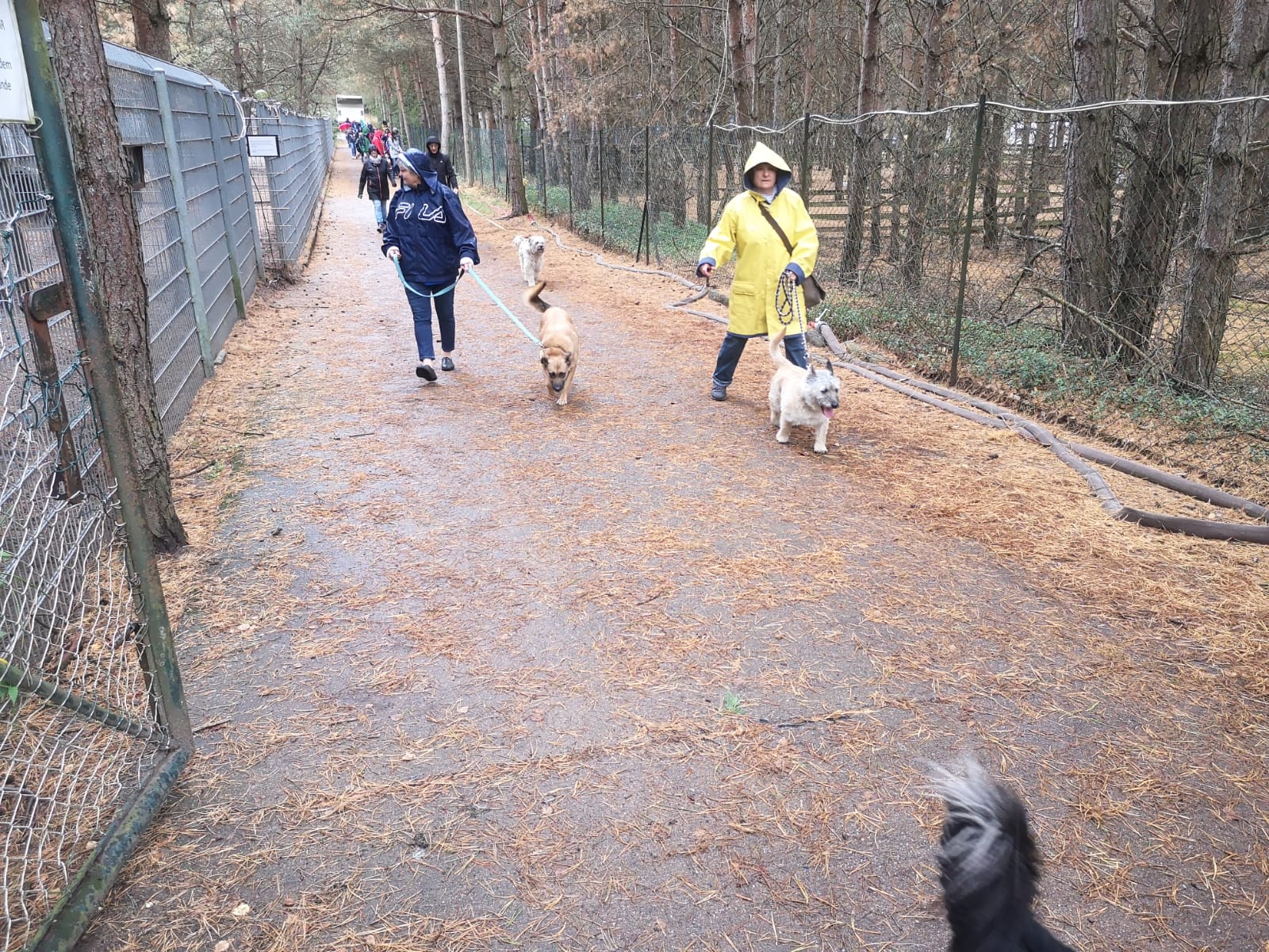 12.45 Uhr: die Gruppe kommt beim Treffpunkt für die Pause an; unser Tierheimleiter stellt Stühle und Bänke auf. Alle wollen sich schnell hinsetzen, damit die Sitze nicht vom Nieselregen nass werden.