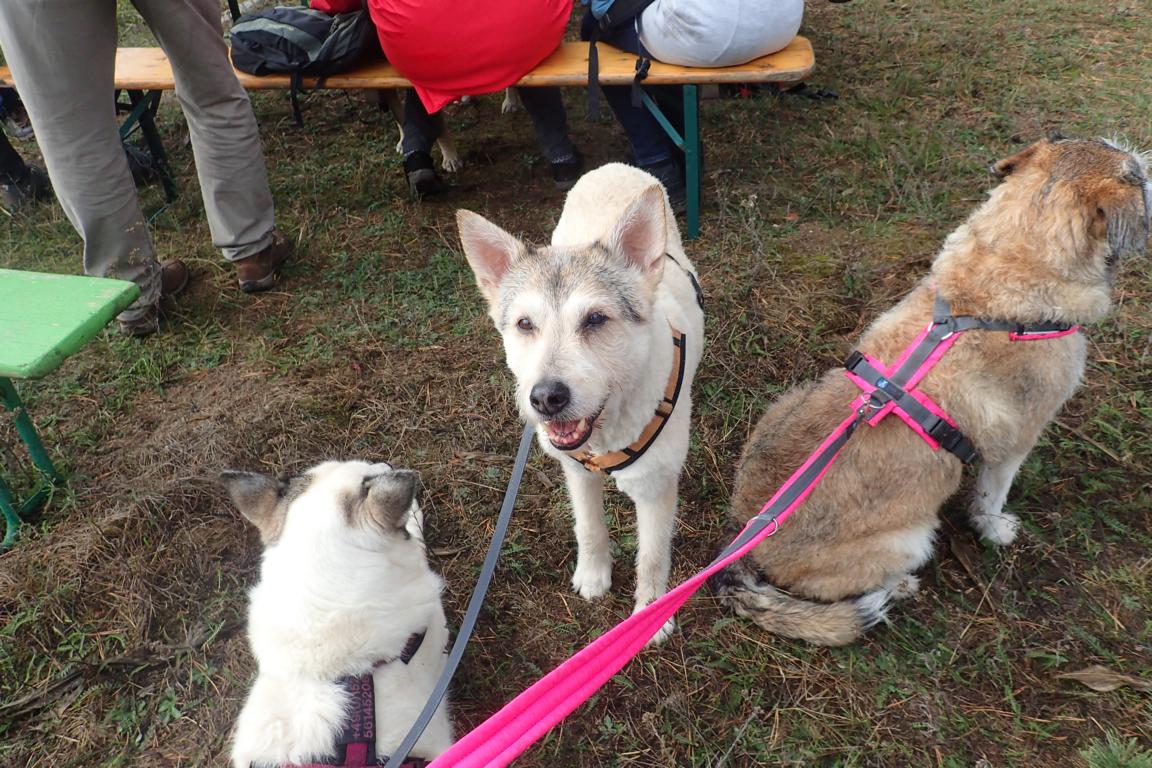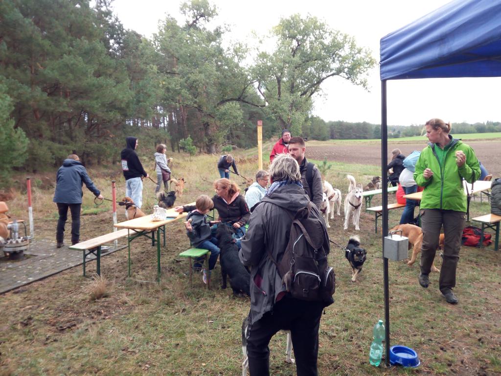 11 Uhr: es ist so voll wie bei der Frühjahrswanderung; überall wuselt es erwartungsvoll – fremde Hunde, unsere Hunde, altbekannte Besucher, Tierfreunde, die wir zum ersten Mal sehen …