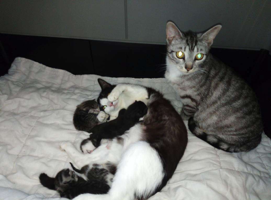 Nur drei Tage später wurde es endgültig zur Gewissheit, dass die dicken Bäuche der Kätzinnen nicht auf Überernährung zurückzuführen waren.