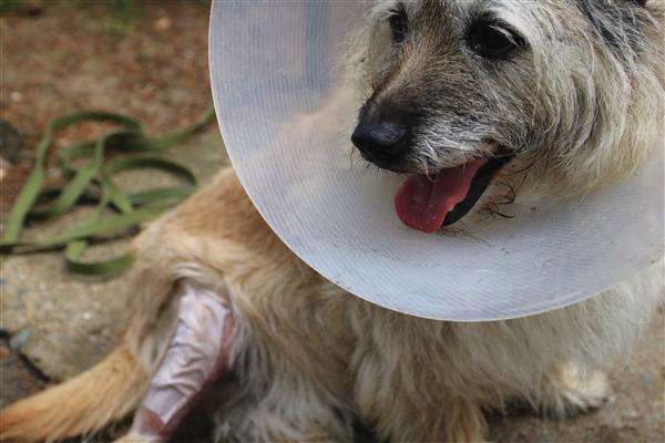 Rocky ließen wir schon vor einigen Wochen wegen eines Kreuzbandrisses operieren. Dem Chirurgen fiel auf, dass er auch am anderen Hinterbein eine alte Verletzung hatte.