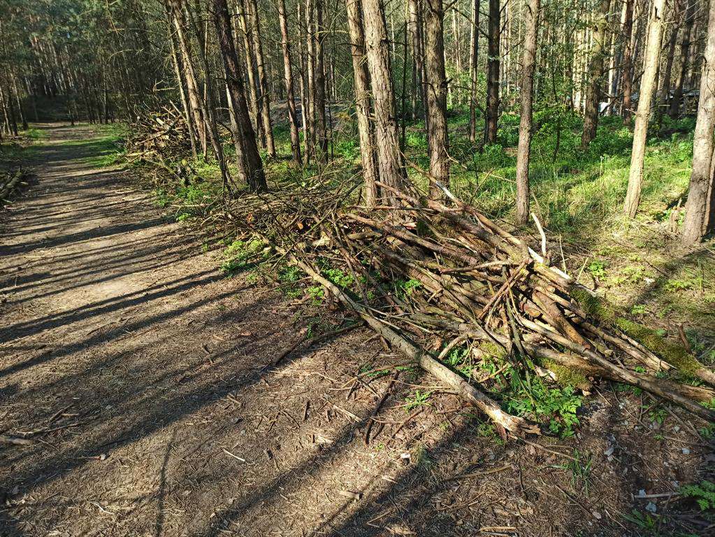 Durch die Trockenheit liegen bei uns immer mehr abgestorbene Äste und teilweise ganze Bäume umher. Wir haben sie bisher zusammengetragen und aufgeschichtet.