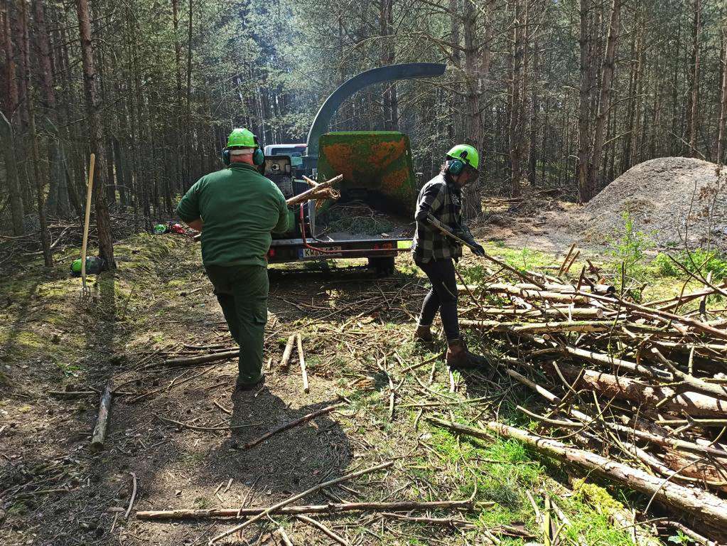 Die Holzschnitzel werden wir als Humusdecke ausbreiten. Damit wird auch die Feuchtigkeit besser im Boden gehalten.
