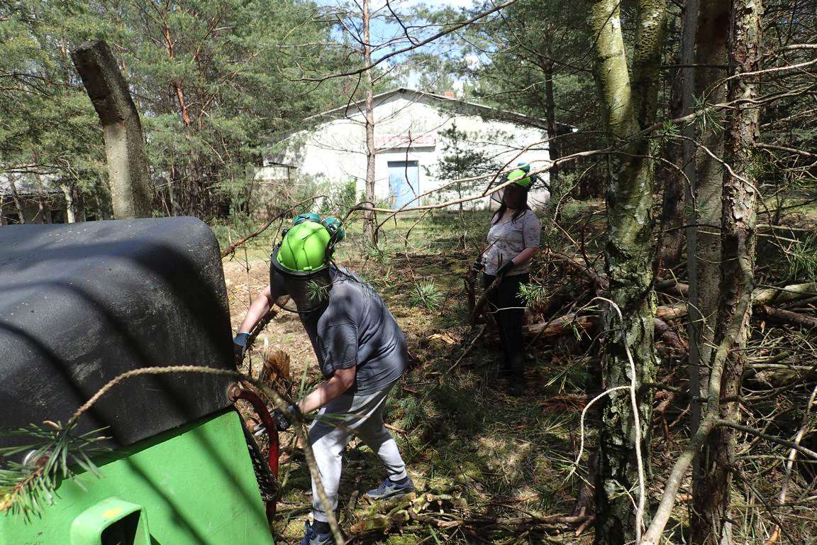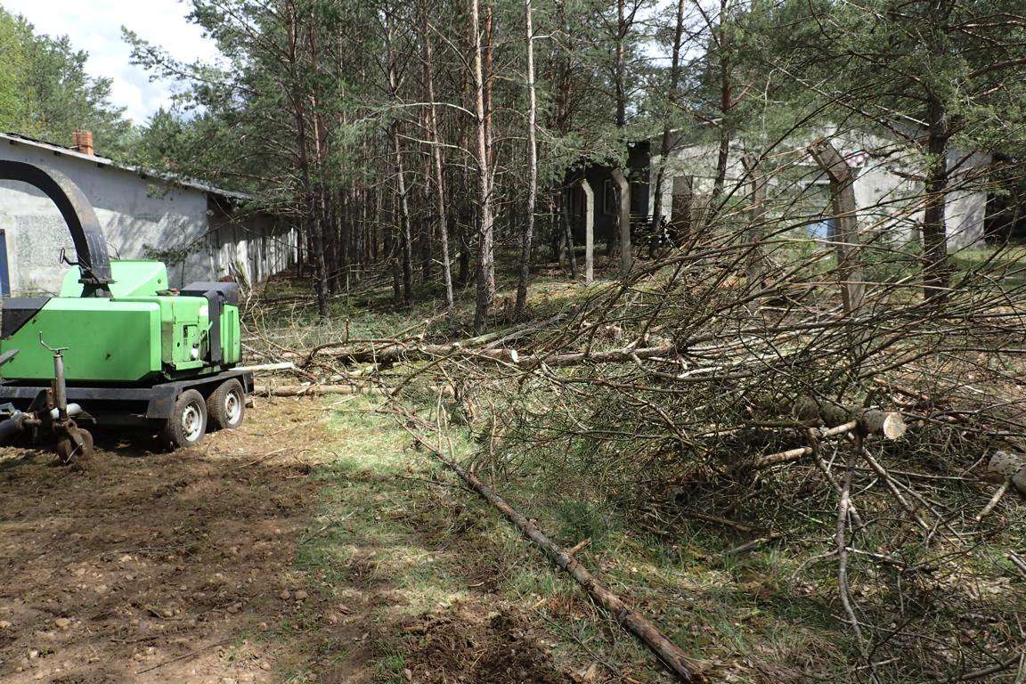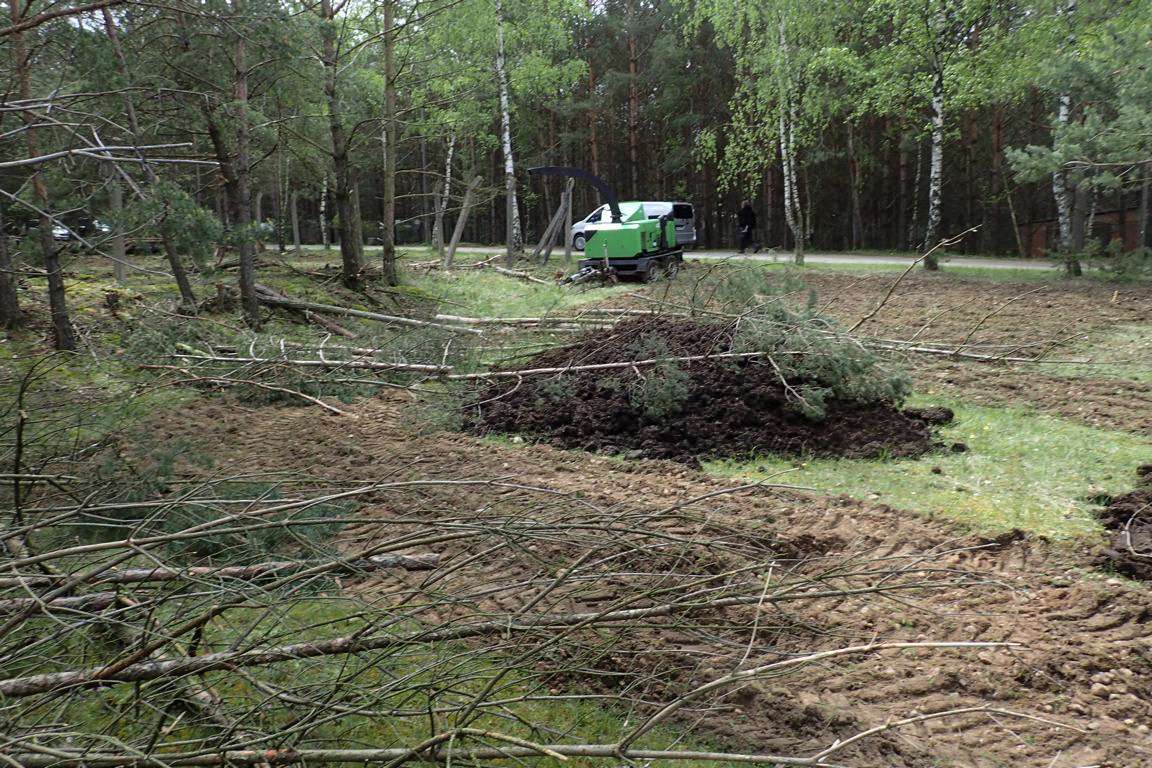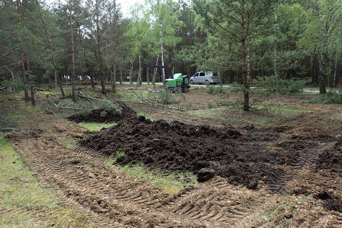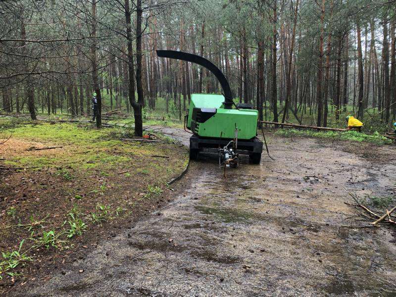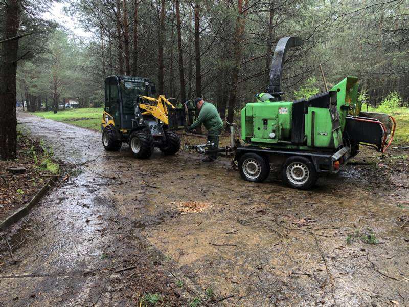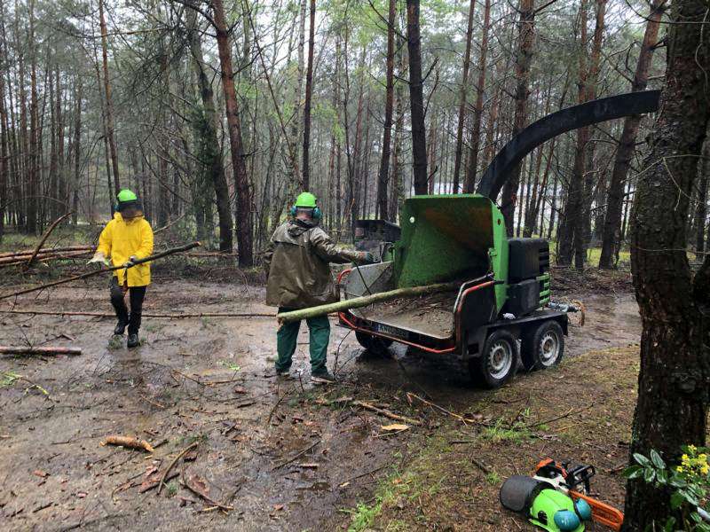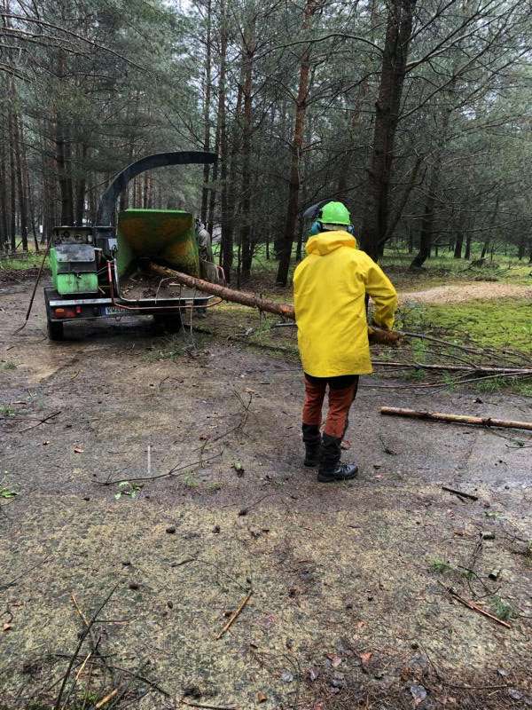 Über 100 trockene Kiefern wurden gefällt und gehäckselt.