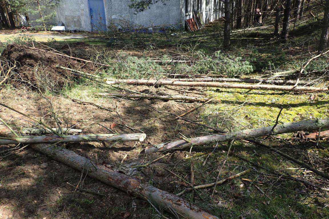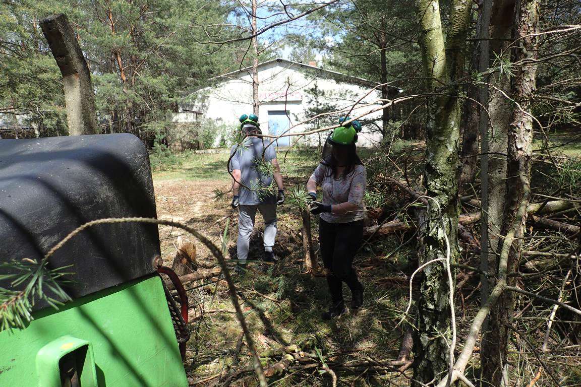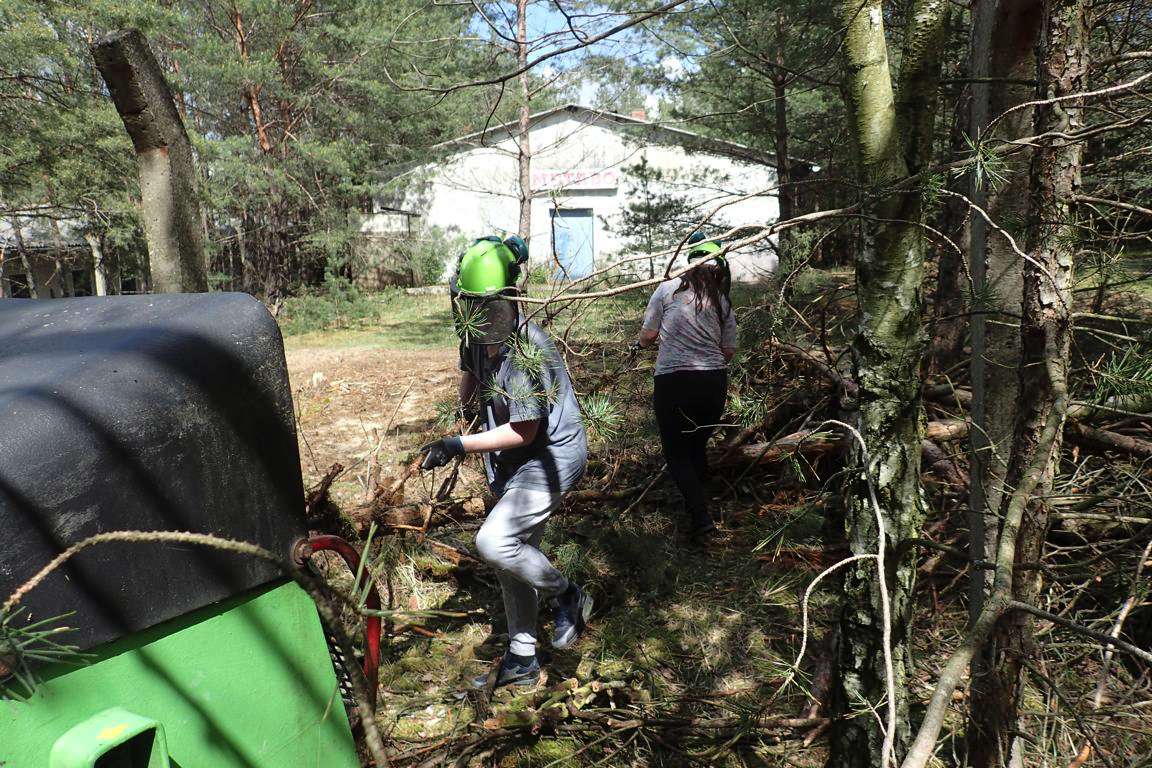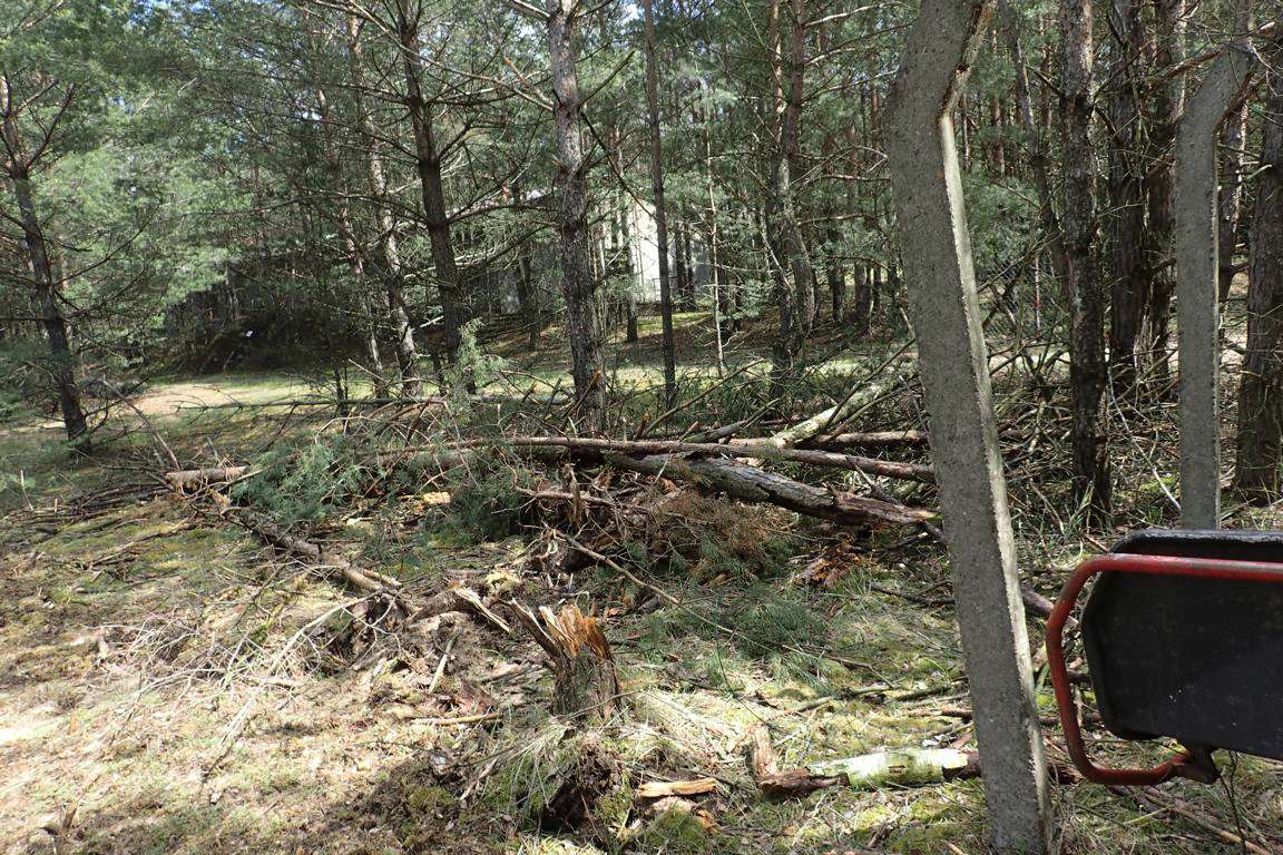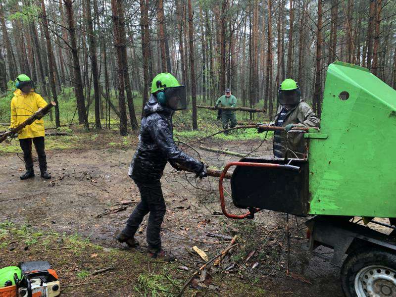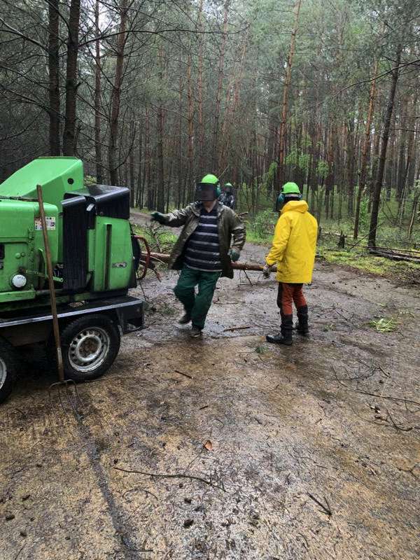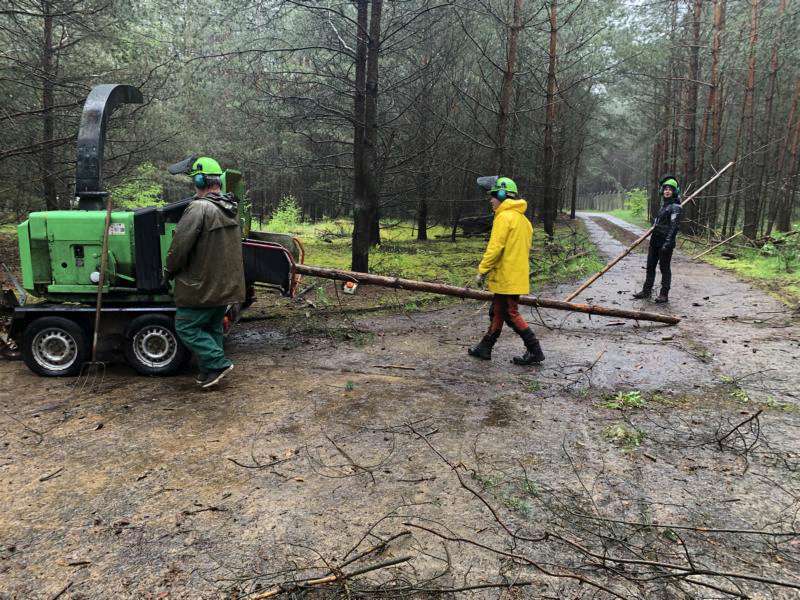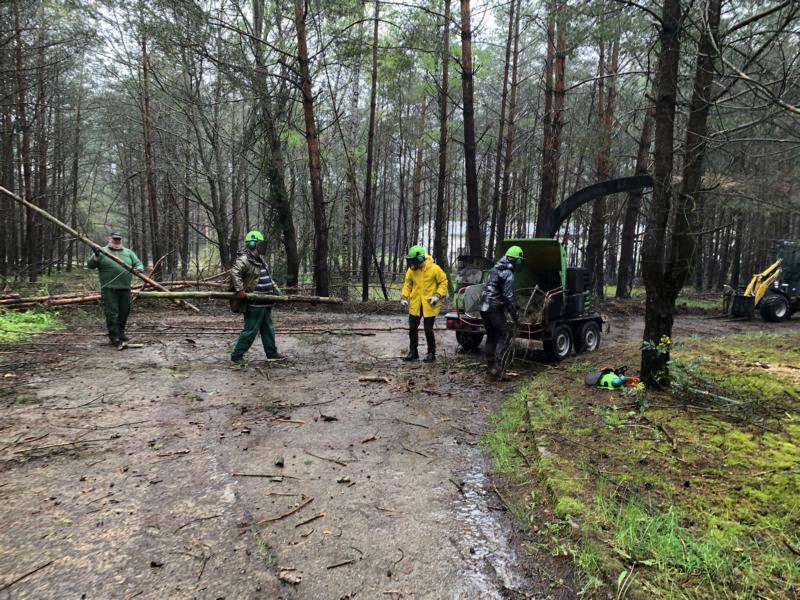 Über 100 trockene Kiefern wurden gefällt und gehäckselt.