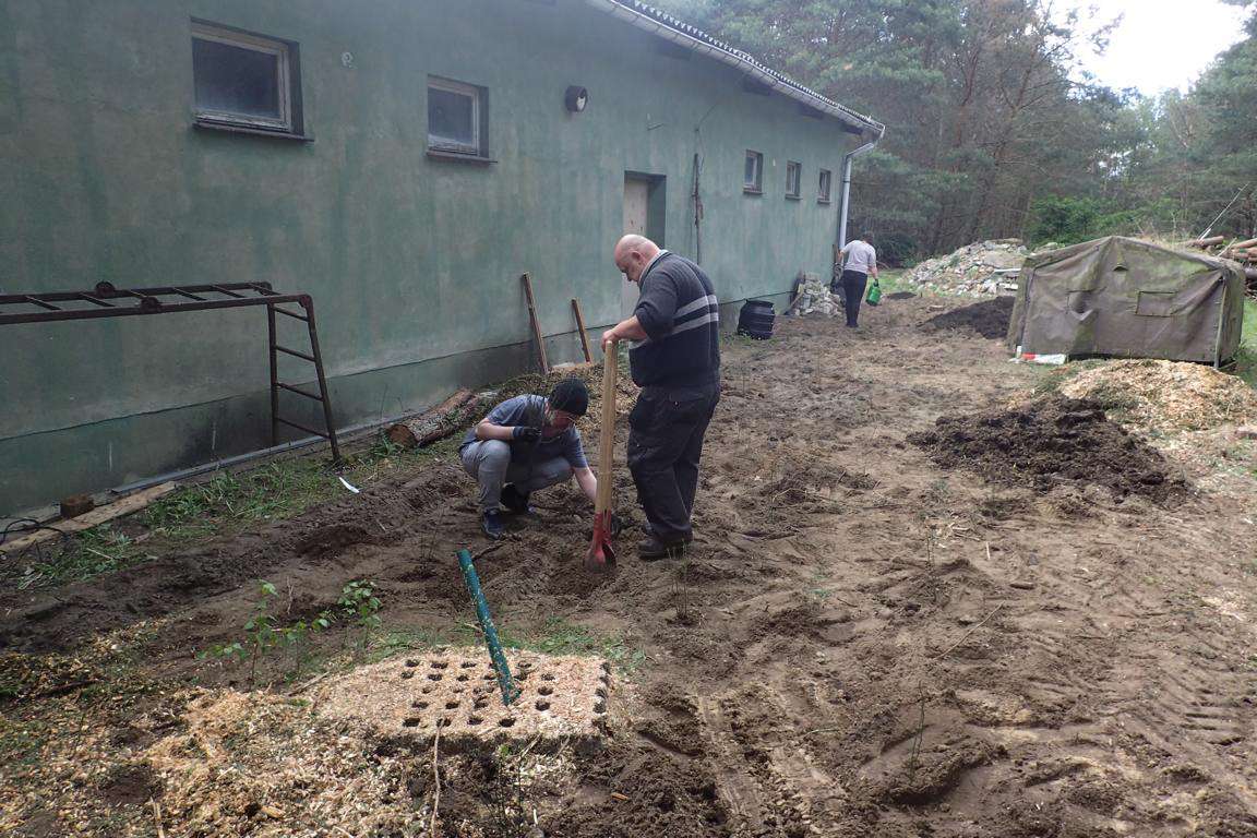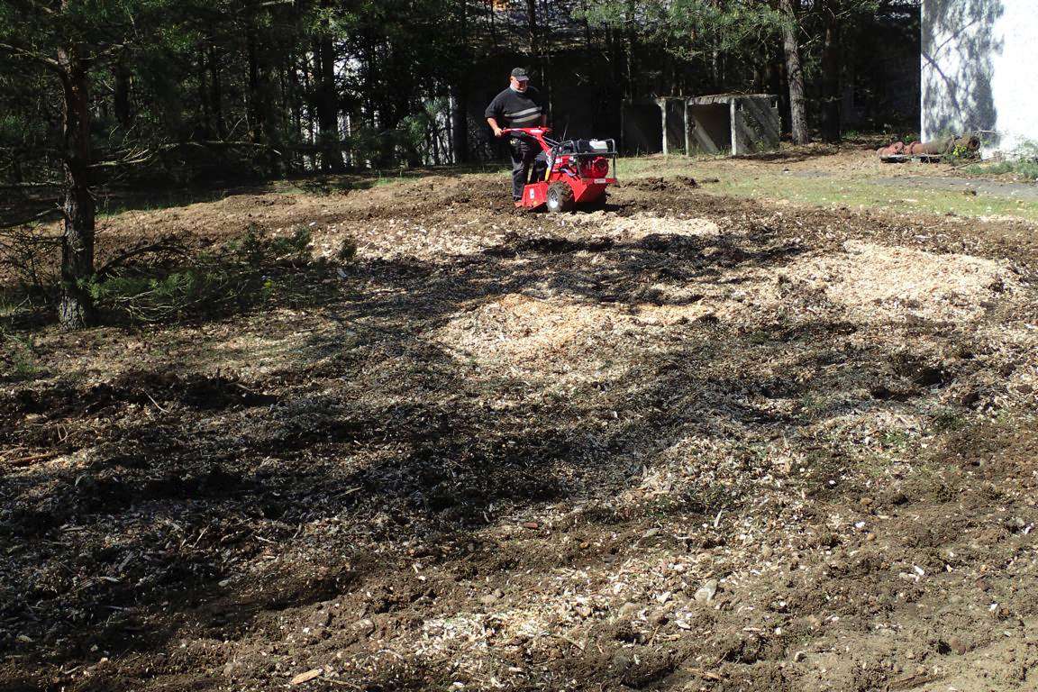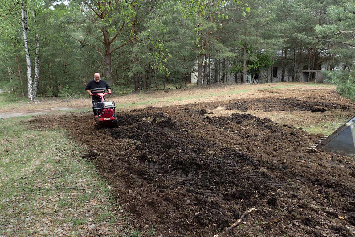 10 Tonnen Kompost, die Cheffe aufgetrieben hatte, mussten verteilt und eingearbeitet werden. Hunderte Quadratmeter Ödflächen wurden gefräst. Eine lange Reihe Heckenspieren konnte angepflanzt werden. 150 Heckenrosen kamen in den Boden. Und ein Zentner Lupinensamen wurde eingesät.