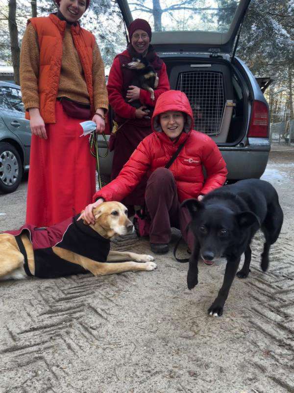 Seit Jahren schätzen wir die Mitglieder eines buddhistischen Klosters, die ab und zu bei uns vorbeischauen und einen Hund adoptieren. Jeder Hund hat sein eigenes Herrchen oder Frauchen. Aber alle wohnen und arbeiten auf einem weitläufigen Gelände, wo die Hunde sich frei bewegen können. Ideale Bedingungen für diese Hunde.