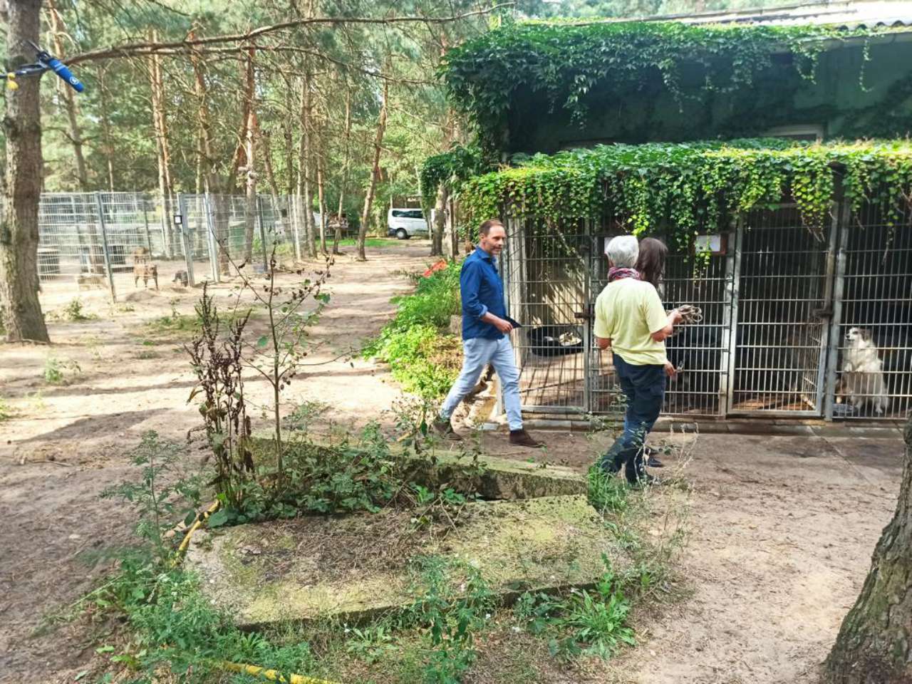 Unsere Ehrenamtlerin Astrid zeigte ihnen das Tierheim und wies die beiden in die Arbeiten ein. Besonders bei den Hunden hatten sie viel Spaß.