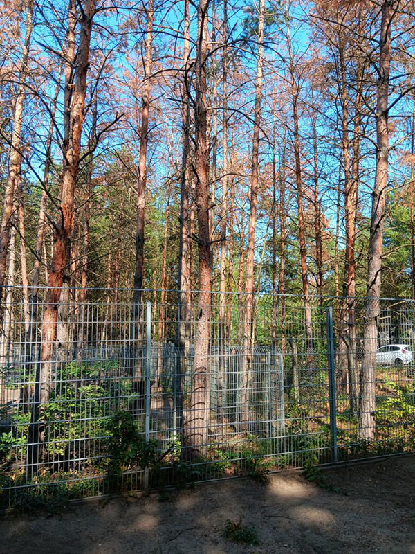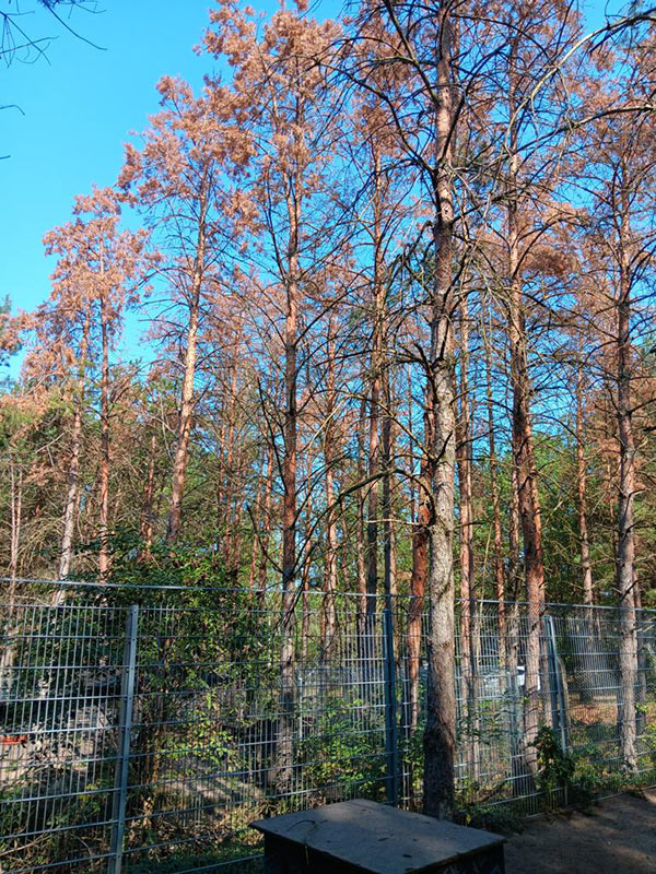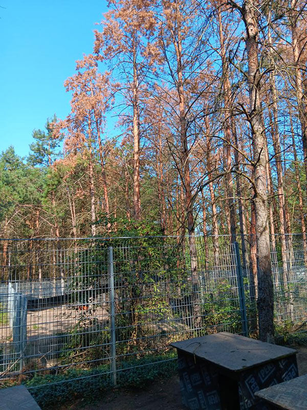 Auf dem Tierheimgelände ist eine Baumgruppe vom Borkenkäfer befallen und muss gefällt werden.
