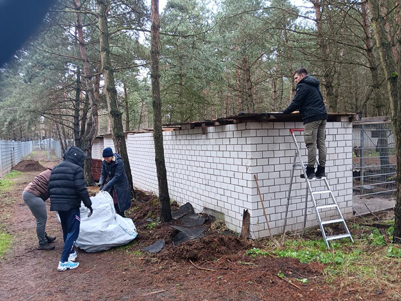 Endlich konnten wir so die Dächer der Hundegehege austauschen. Schon lange ärgerten wir uns über die marode altersschwache Anlage, denn die Hunde standen im Dreck, wenn es durchregnete.