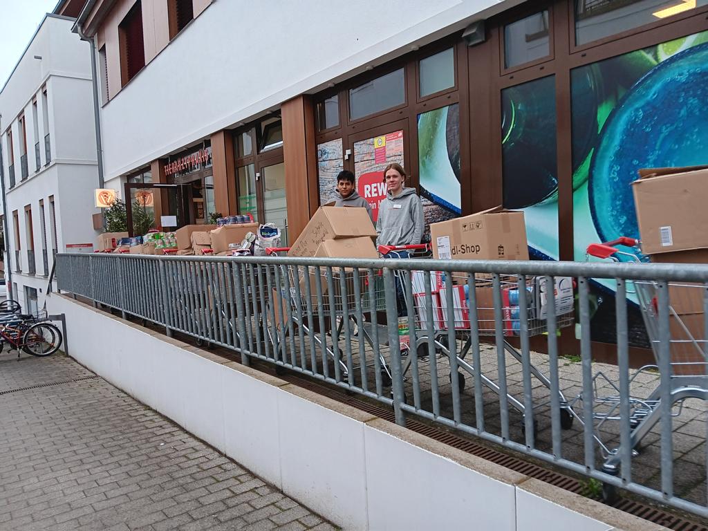 11 vollbepackte Einkaufswagen warteten auf uns.
