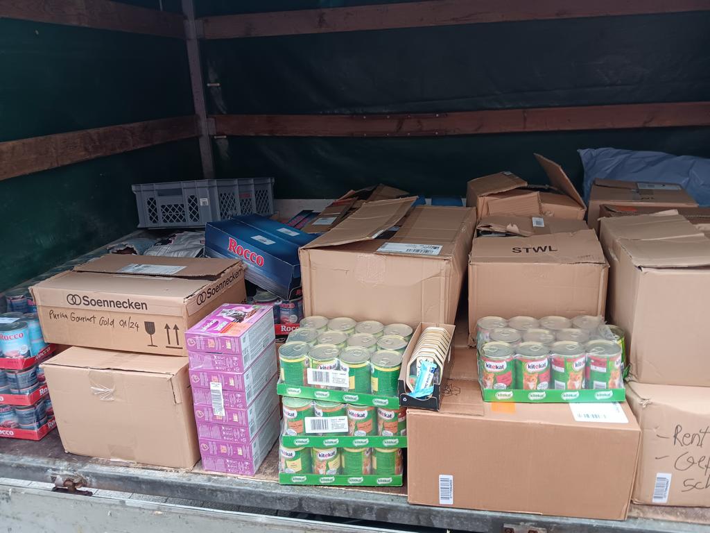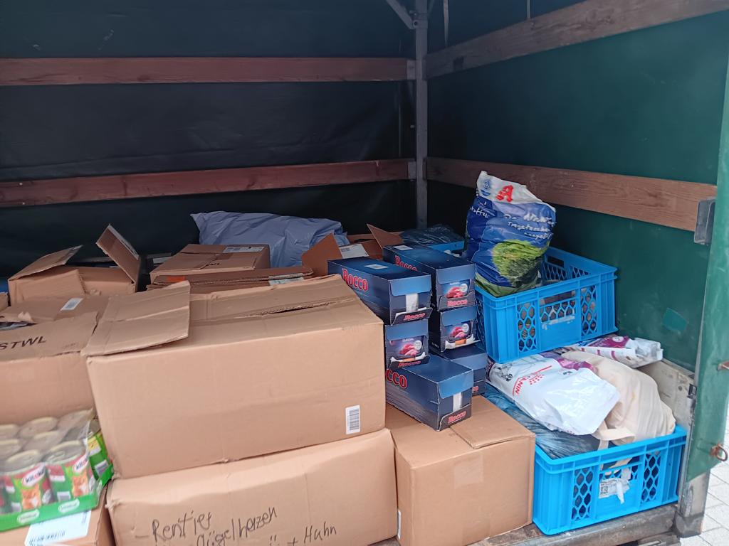 Da unser Transporter schon mit etlichen Fressnapf-Spenden beladen war, nahm unser Tierheimleiter zur Sicherheit noch einen großen Hänger mit.