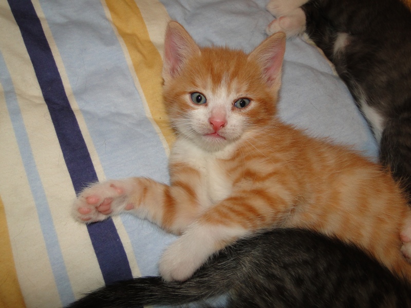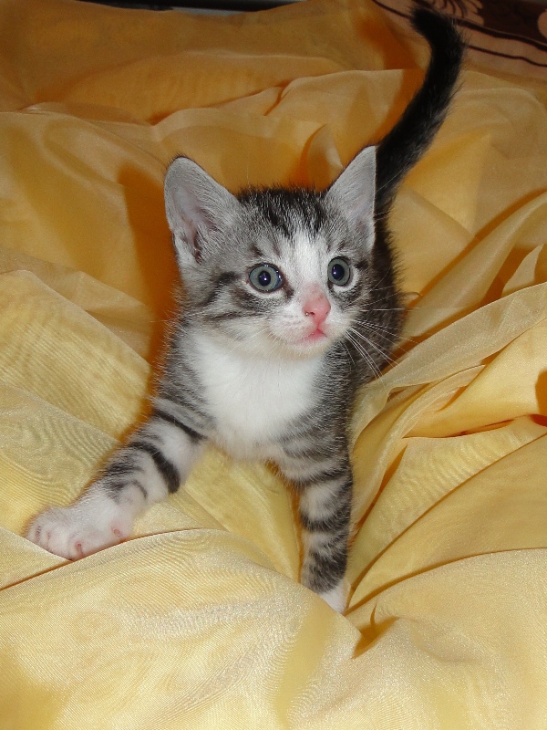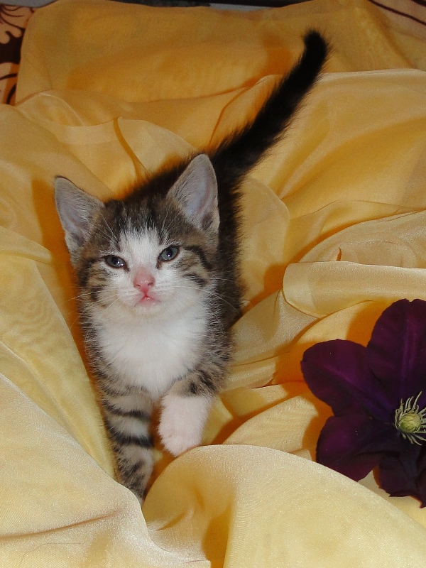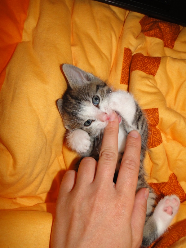 Mama Fay mit Baby "Mittlererweile haben die Kleinen schon gelernt, dass es durchaus weh tun kann, wenn man dem anderen die Krallen oder die kleinen spitzen Zähnchen irgendwo reinhaut. Genau deshalb ist es so wichtig, dass die Kitten nicht so früh voneinander getrennt werden: um eben genau diese Erfahrungen unter Artgenossen sammeln können. Wie mir berichtet wurde, gibt es schon reges Interesse an den Kleinen. Von daher möchte ich Sie bitten: Lassen Sie den Kleinen noch die Zeit, bis sie mindestens 12-13 Wochen alt sind. Sollten Sie das Glück haben, die Anstellung als Dosenöffner und Animateur von einigen dieser kleinen Kitten zu erhalten, dann werden Sie noch viele weitere wundervolle Jahre mit ihnen verbringen. Sie können auch dann noch zusehen und miterleben, wie sie aufwachsen und die einen oder anderen Abenteuer erleben. Blödsinn werden die noch genug anstellen, das verspreche ich Ihnen. Nur lassen Sie den Kleinen die Möglichkeit, ihre ersten Erfahrungen zu sammeln, um dann später gut sozialisiert bei Ihnen einziehen zu dürfen.