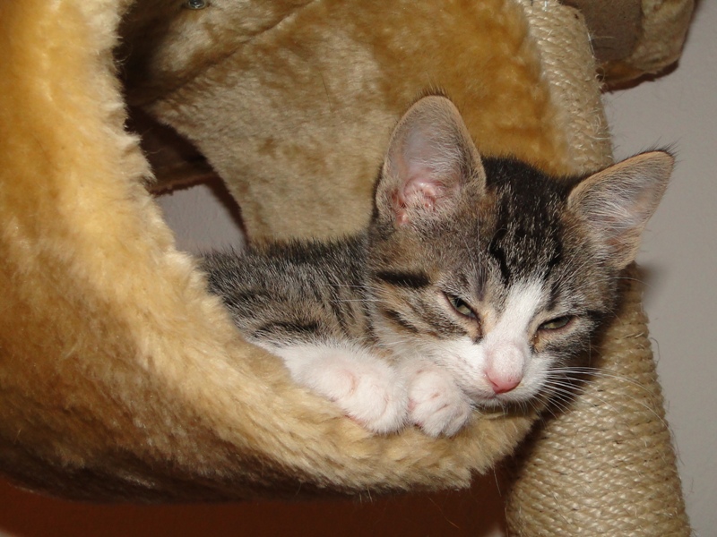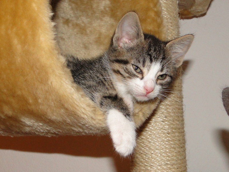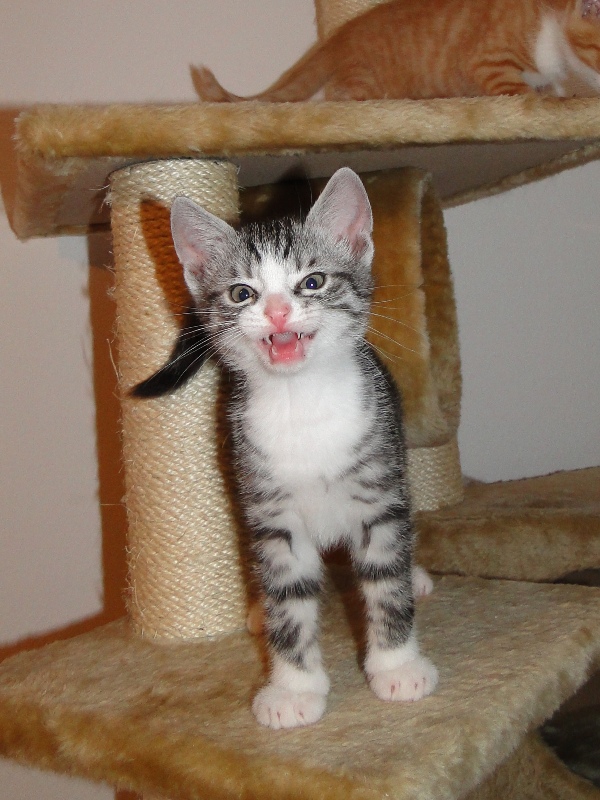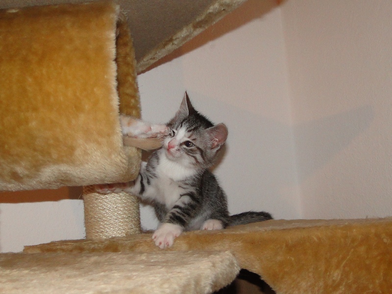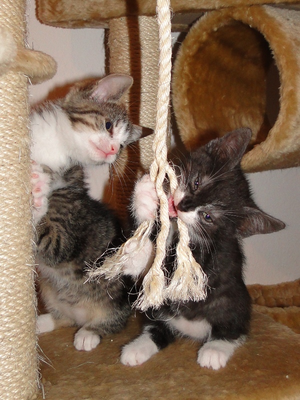 "Tja, zu einer umfangreichen Katzenausstattung gehört nunmal auch ein ordentlicher Kratzbaum. Diese Woche haben meine Pflegekätzchen verstanden, wozu er dienen soll. Nun wird getobt, was das Zeug hält. Kratzbäume dienen eben nicht nur zum "Kratzen", was natürlich wünschenswert ist bevor die Katze sich an den Möbeln vergreift. Gerade Wohnungskatzen sollten artgerecht gehalten werden - also nicht einzeln. Und die Umgebung sollte so gestaltet sein, dass sie ihre natürlichen Instinkte ausleben können. Deshalb ist ein großer Kratzbaum Pflicht. Katzen lieben hohe Schlafplätze und somit sind zimmerdeckenhohe Kratzbäume ideal. Durch die verschiedenen Ebenen, wo man verschiedene Dinge anbringen kann, kann man den Kratzbaum auch immer spannend machen. Er lädt dazu ein, auch mal mit Karacho rauf und runter zu wetzen - genauso wie es Katzen in der freien Natur auch machen würden.