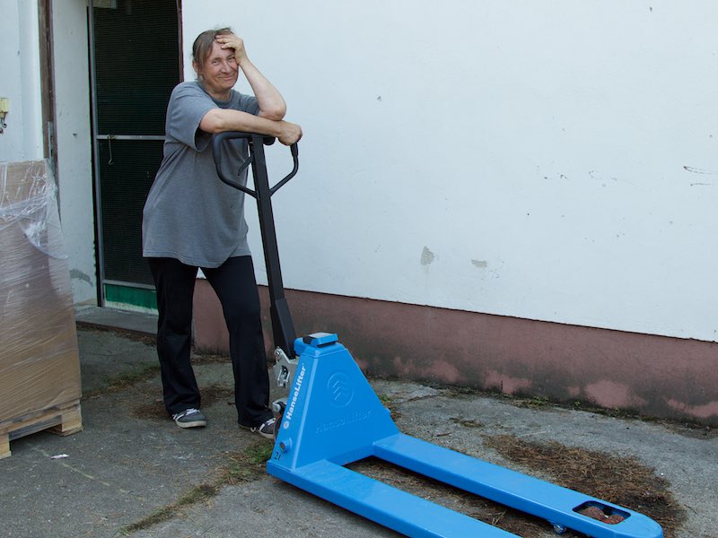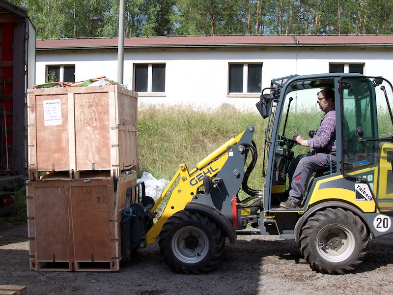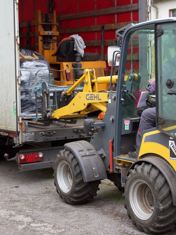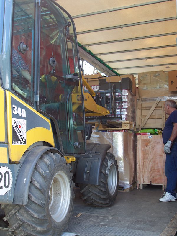 Als nächstes ging ein Gapelstapler mit auf die Reise. In der SMEURA warten sie schon ganz, ganz dringend auf ihn, denn ihrer ist kaputt.
