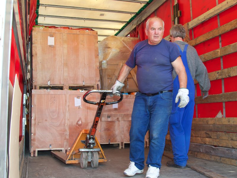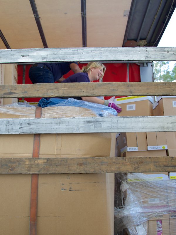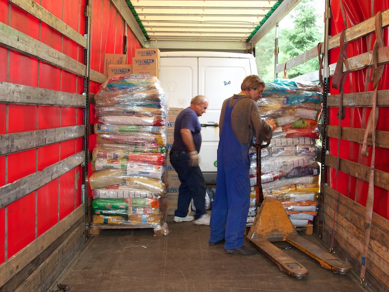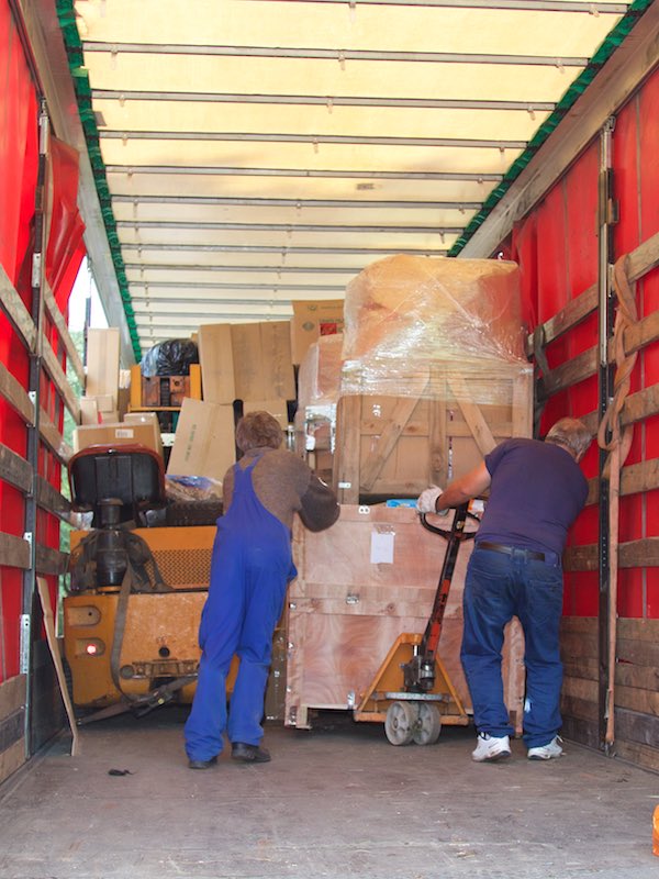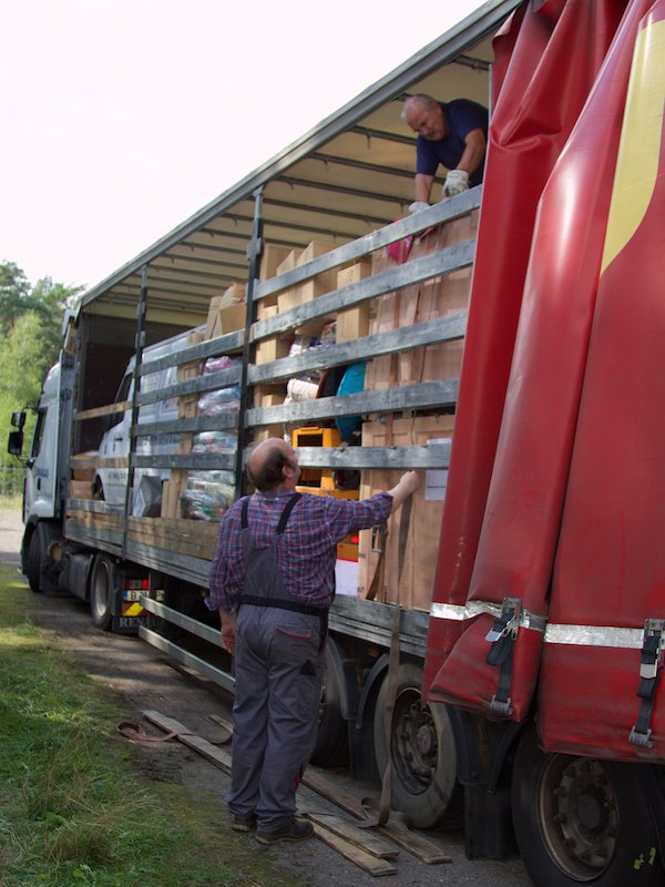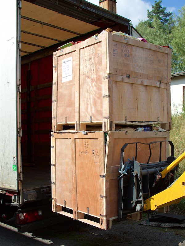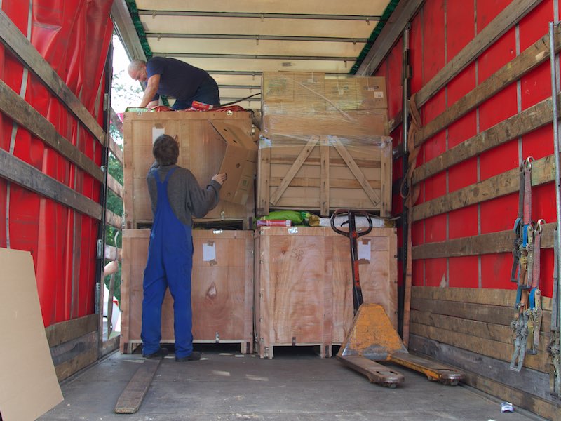 Jede Ecke wurde ausgenutzt, denn aufgrund der Plane durften wir nicht so hoch laden wie sonst beim Kasten-LKW. Also musste in jeder freien Ritze etwas untergebracht werden.