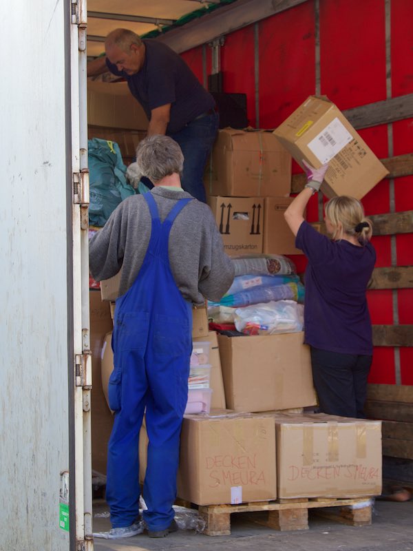 Am Wochenende beluden fleißige Helfer unseres Tierheimes erneut einen LKW mit Sachspenden für die SMEURA.