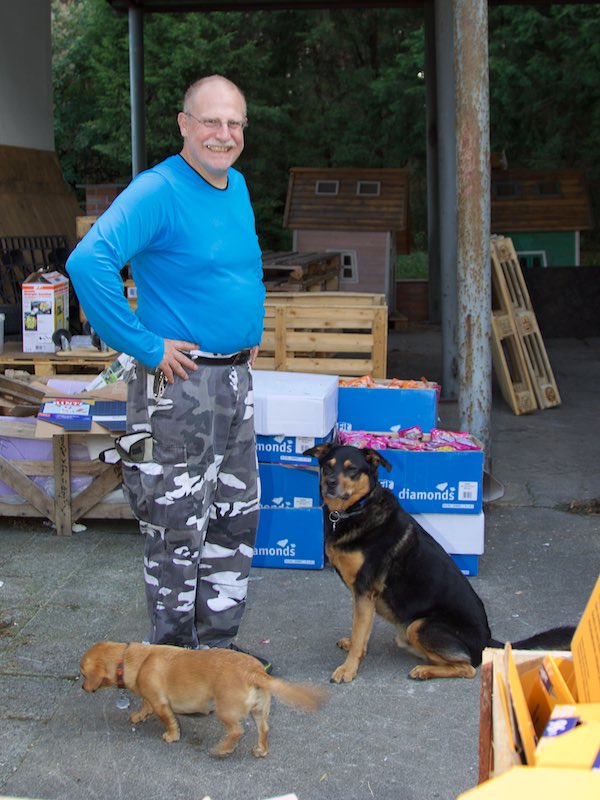 Eine Messebaufirma hatte 1,5 Tonnen feinste Hartfaserplatten von Messeständen spendiert. Beim Verladen hätte es unseren Tierheimleiter aufgrund der Menge fast von den Rädern gehauen, was recht lustig aussah.