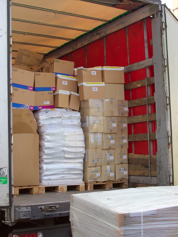 Etliche Kilo Welpenmilchpulver sind an Bord - ebenso 800 kg Waschpulver. Das ist fast eine Tonne und dürfte selbst in der SMEURA ein paar Tage reichen.94