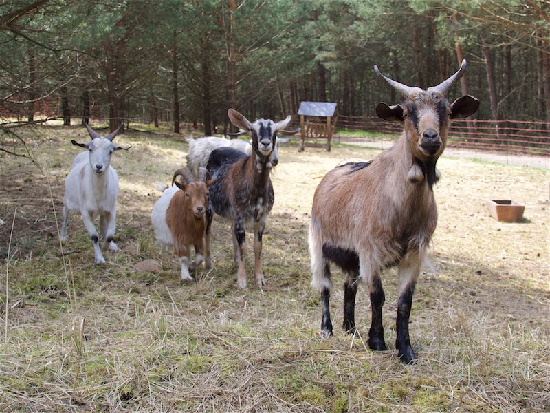 Zusätzlich zur Grasnarbe erhalten unsere Ziegen und Schafe natürlich Heu, aber auch Kraftfutter (Kleie u.ä. direkt aus einer Biomühle). Als Leckerli gibt es Möhrchen, Äpfel, Kartoffeln und Kräuter.